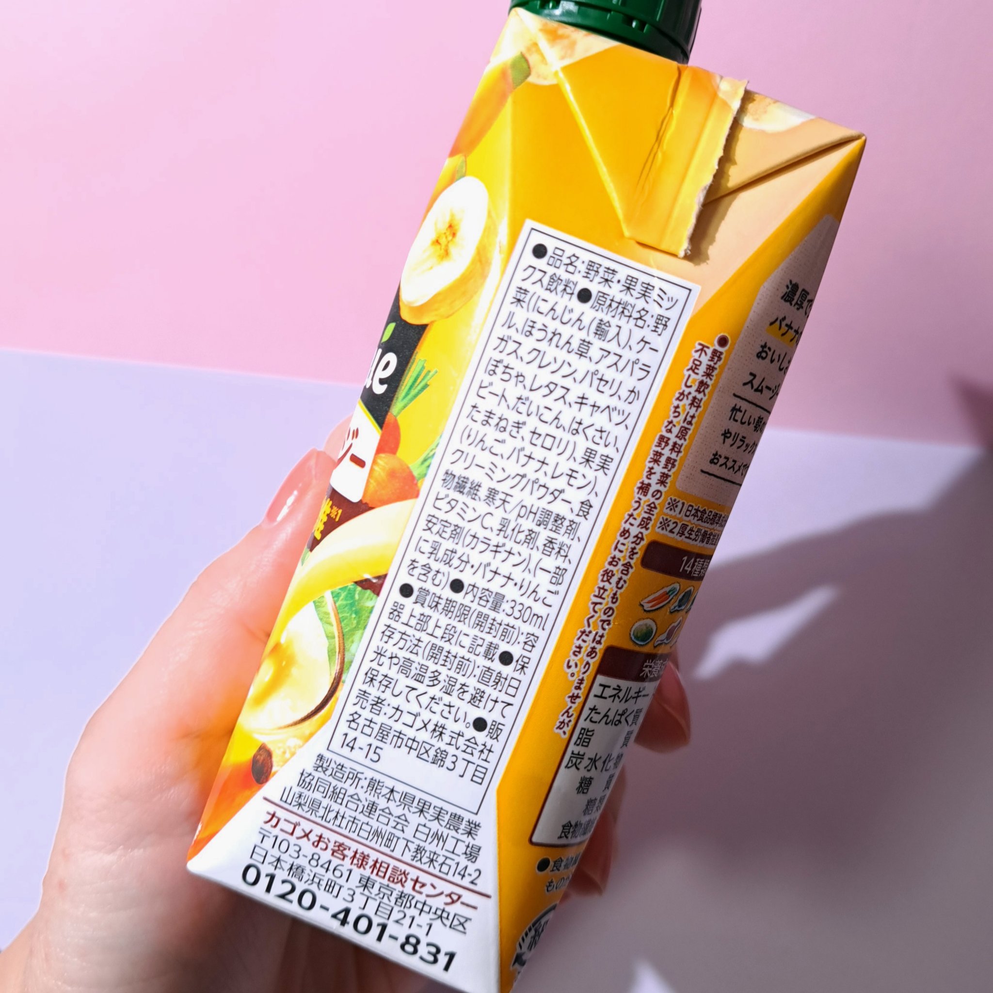 1/2日分の野菜※1を使用し、バナナ3本分の食物繊維※2が摂れ、しっかりカリウムもとれる、濃厚スムージーです。 濃厚クリーミーなバナナのおいしさです。 砂糖不使用です。 とろみはあるが粒感はない。さらっとしたスムージー バナナミルク的な味 しつこくない甘さ
