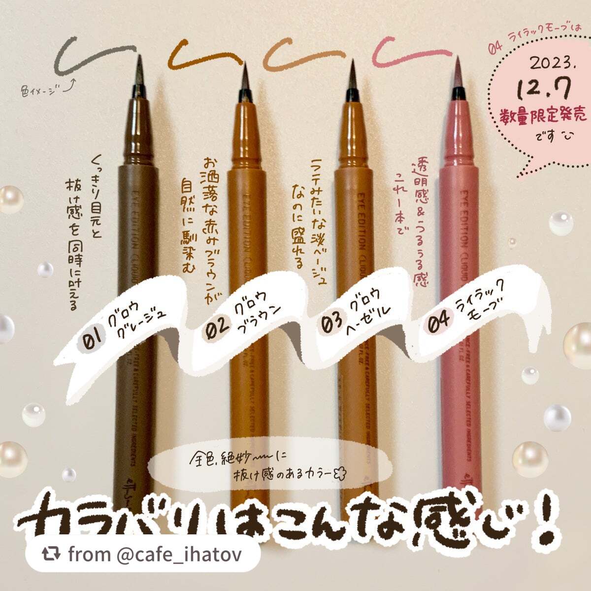 - 潤んだツヤを放つグロウパールで、 目尻ラインを印象的に引き立てるリキッドアイライナー 〇潤んだようなツヤを放つ高輝度なグロウパールと、絶妙ニュアンスカラーで目尻を引き立てる。 〇コシがあり、ブレずに描きやすい筆。 ー職人による手組み×専用設備で仕上げた高品質な筆 ー厳選した2種の毛を混毛 ー高輝度なグロウパール配合にも適した構造 〇つけたての仕上がりが長時間持続。 〇汗・皮脂・涙・こすれ・湿気に強い 〇ウォータープルーフ 〇お湯で簡単に落とせる。 〇美容液成分配合 ー保水成分(ヒアルロン酸) 〇無香料 〇アレルギーテスト済(すべての方にアレルギーが起きないというわけではありません)