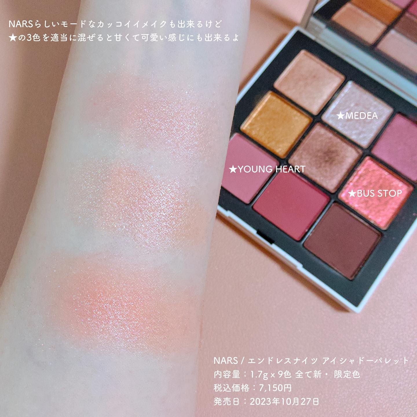 可愛すぎる限定パレット🤍□商品情報□ブランド名:nars商品名:エンドレスナイツアイシャドーパレット販売価格:税込¥8,800-2023年のホリデーコレクションですが記録用📝2023年のホリデーコレクションのテーマは“SPARKTHEPART...