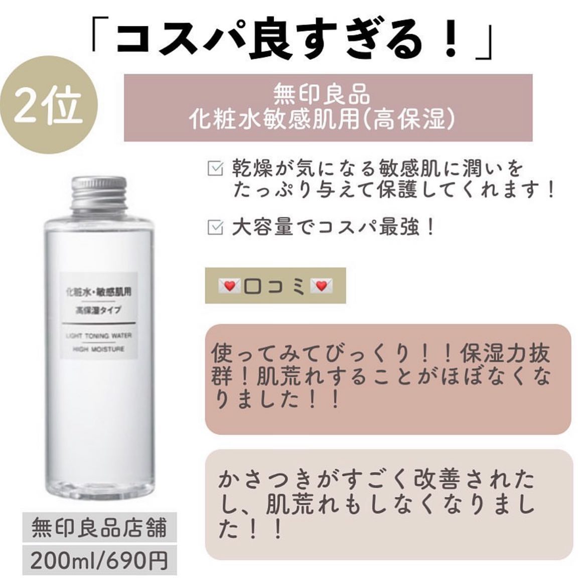 無印良品 敏感肌用化粧水 高保湿 | 390円 |