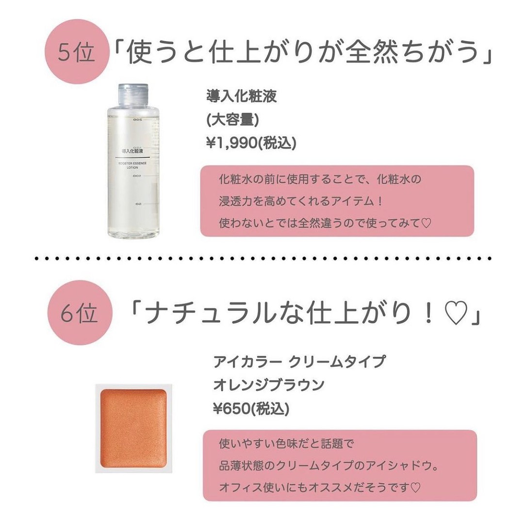 無印行ったらコレ買って🥹❣️買って損なしアイテム8選🫶🏻୨୧୨୧無印良品発酵導入美容液¥1,990ネイルケアオイル¥890ホホバオイル¥890携帯用アイラッシュカーラー¥390リップエッセンスエッセンス・ピンク¥890紙おしろい¥190日焼け...