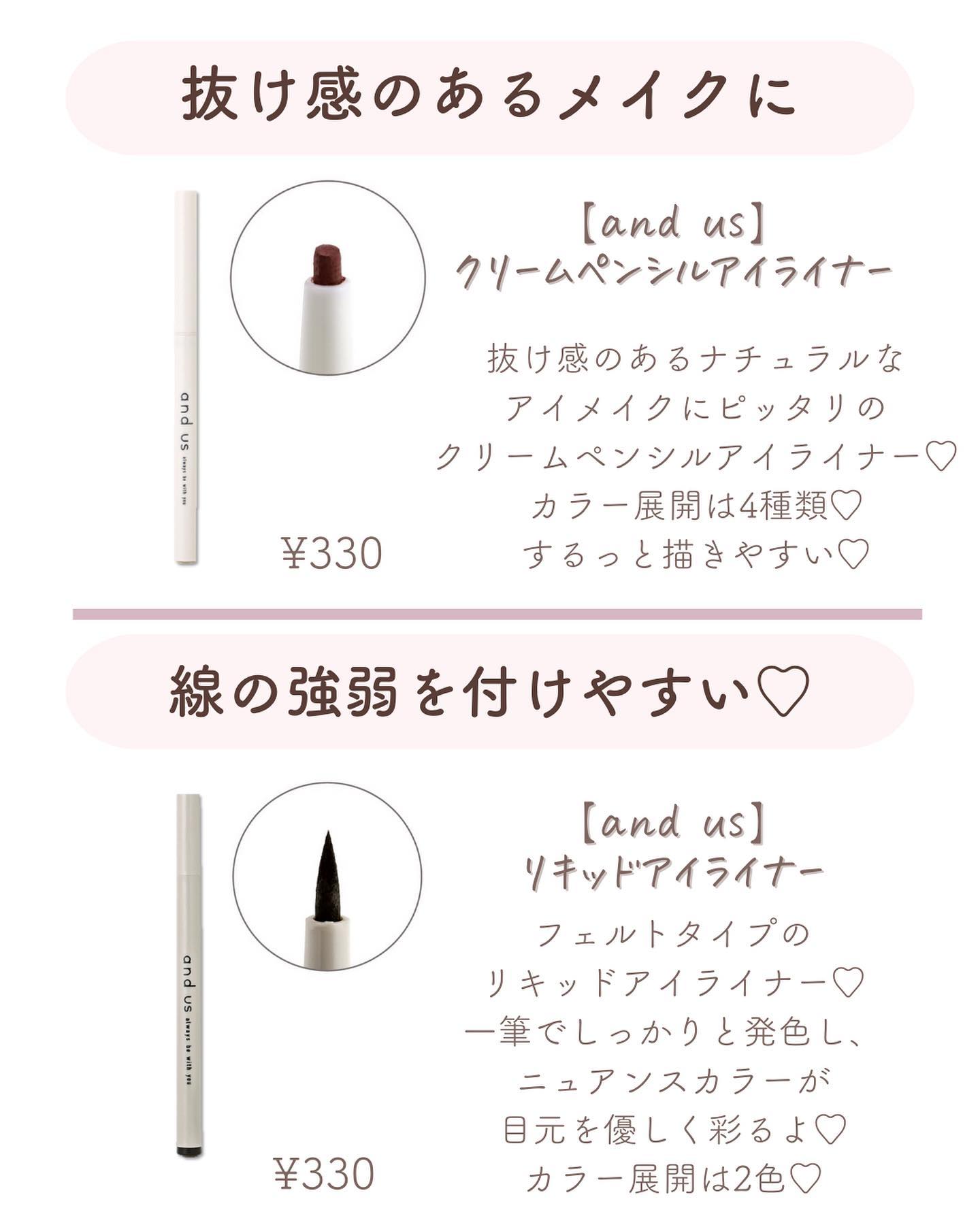 初心者さんにはリキッドタイプのアイライナーがおすすめです! 細くてスルスル描きやすいので、ペンシルよりも簡単にできると思います✨ 今回使ったアイライナーはD-UPのリキッドアイライナーのシフォンブラウンです🩰