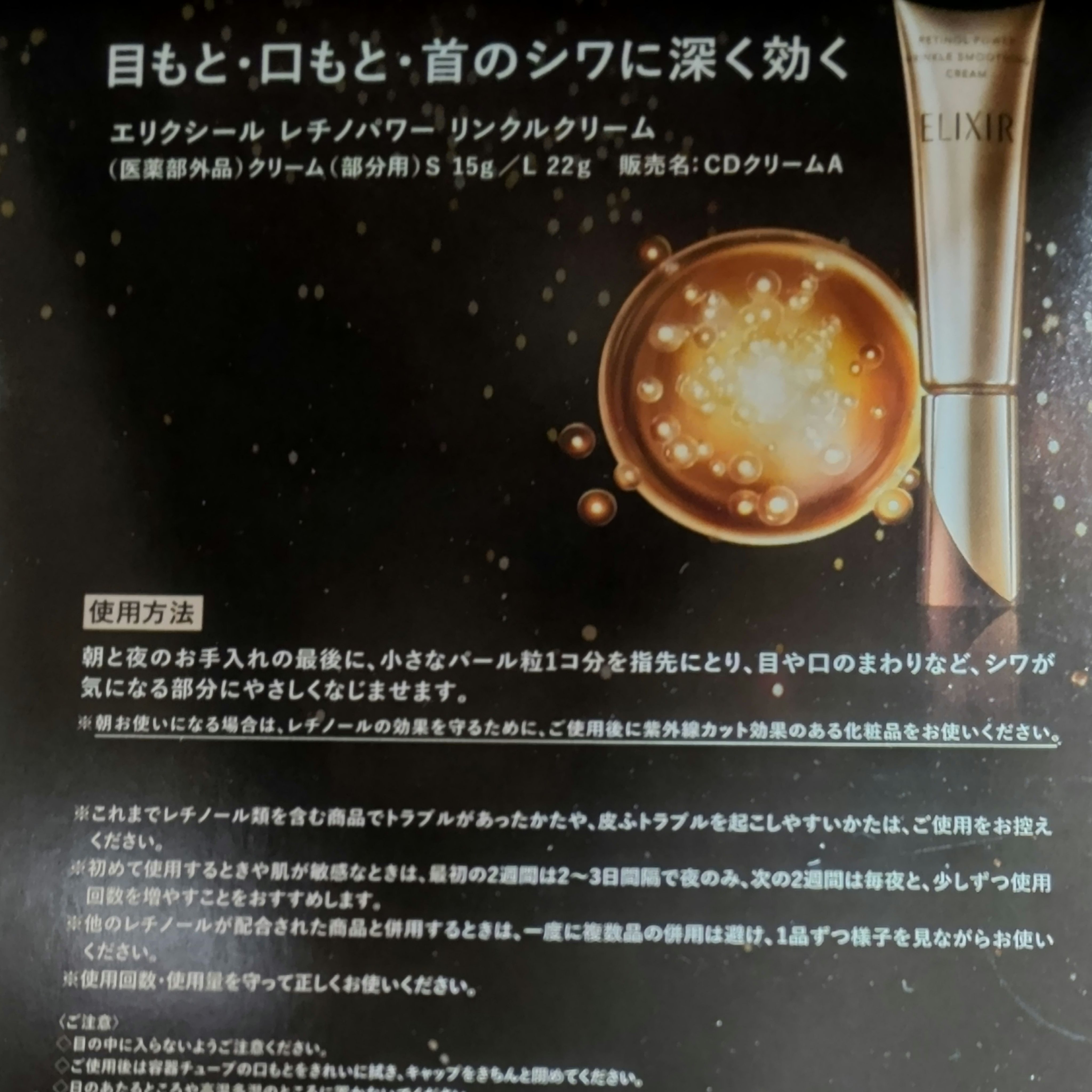エリクシールレチノパワーリンクルクリーム純粋レチノールのクリーム医薬部外品で有効成分はレチノールクリームタイプなのでピンポイントに塗りやすいです以前もサンプルを使ったことがあった気がしますがその時もかなり好みだった気がする3日間くらい使ったと...