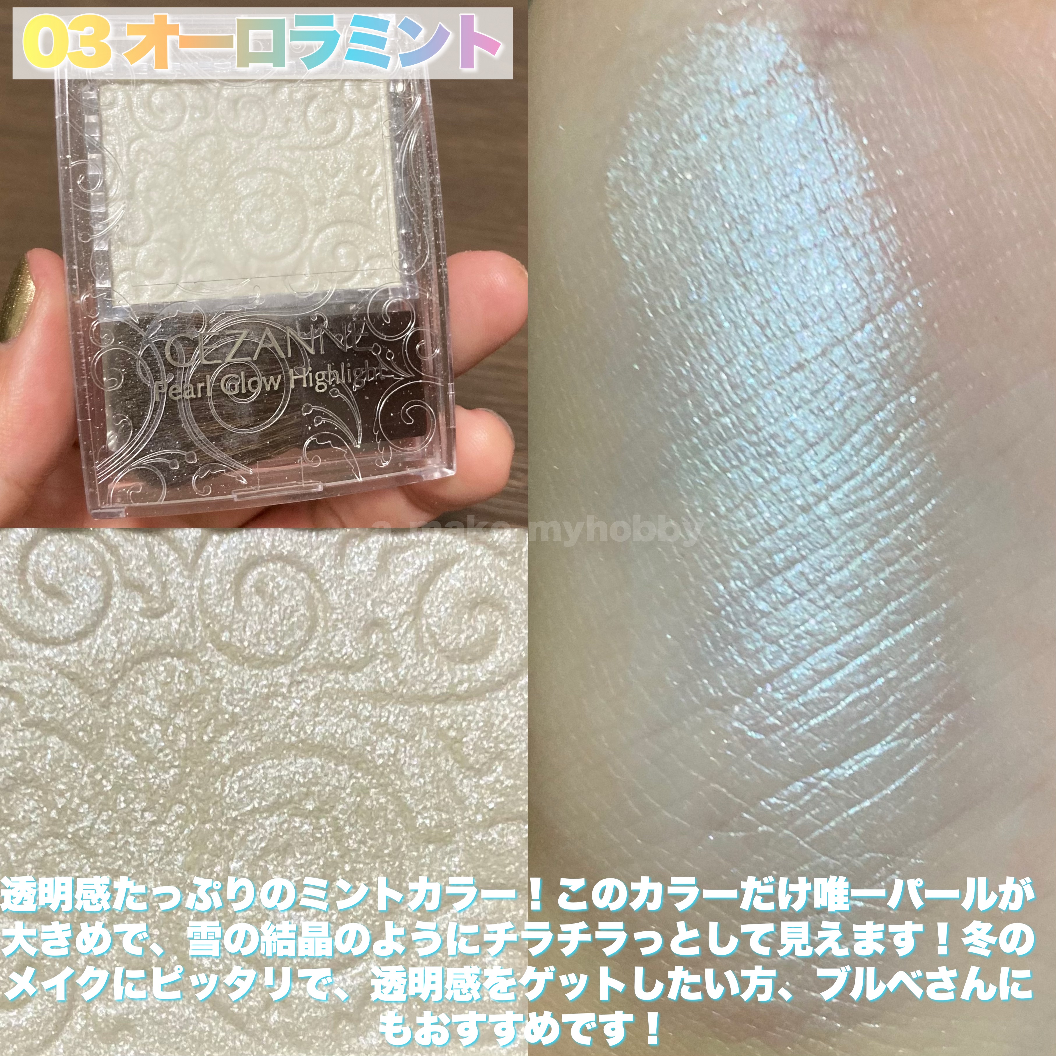 プチプラだとは思えないほどキラキラする綺麗なハイライト。ひとつ持っていて損はありません! オーロラミントは、肌につけると緑感はあまりなくて、透明感を出しながら発光してくれます。 シェルピンクはナチュラルに血色感も出しつつ馴染むカラーです