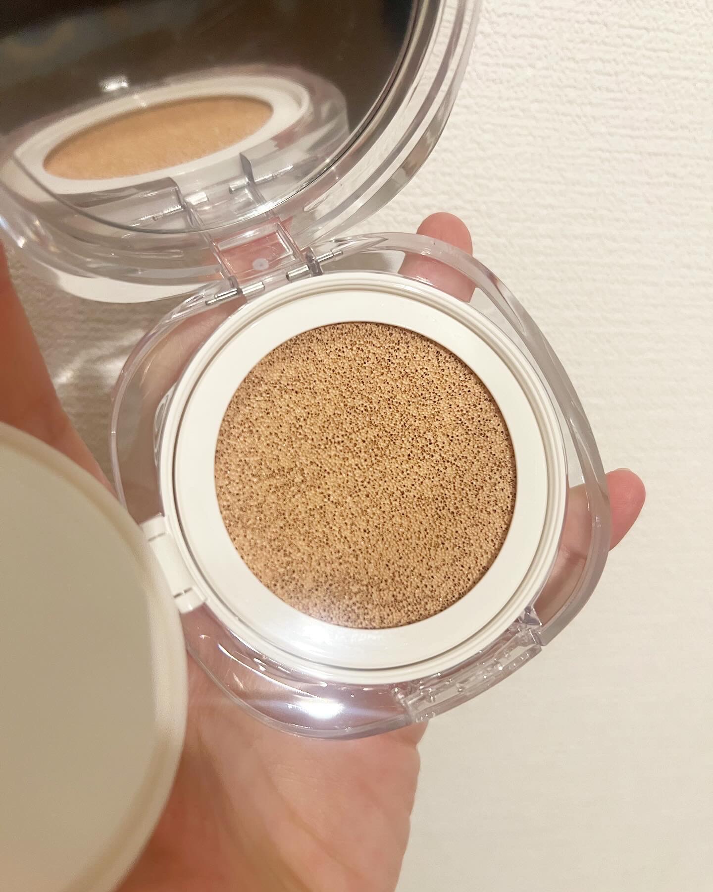 しっかりめにパフにつけてもべたっとつかない 気になるところのカバーしてくれて仕上がりはキレイだけど、私には少し白い 薄く上がる製剤らしく、自分でカバー力を調整可能 セミマットだけど光によるツヤ感がキレイ 肌につけるとひやっと感じる ウォーターエッセンス60%含有みたいです 乾燥肌なので嬉しいポイント ミラーにもなるパケでとても可愛い💕