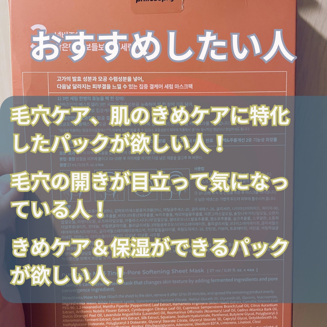 - 高価な発酵成分(保湿)と収れん成分を配合し、肌を引き締めてキメを整える集中キメケアシートマスク。