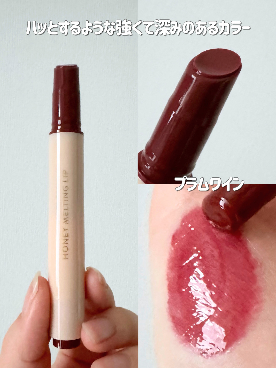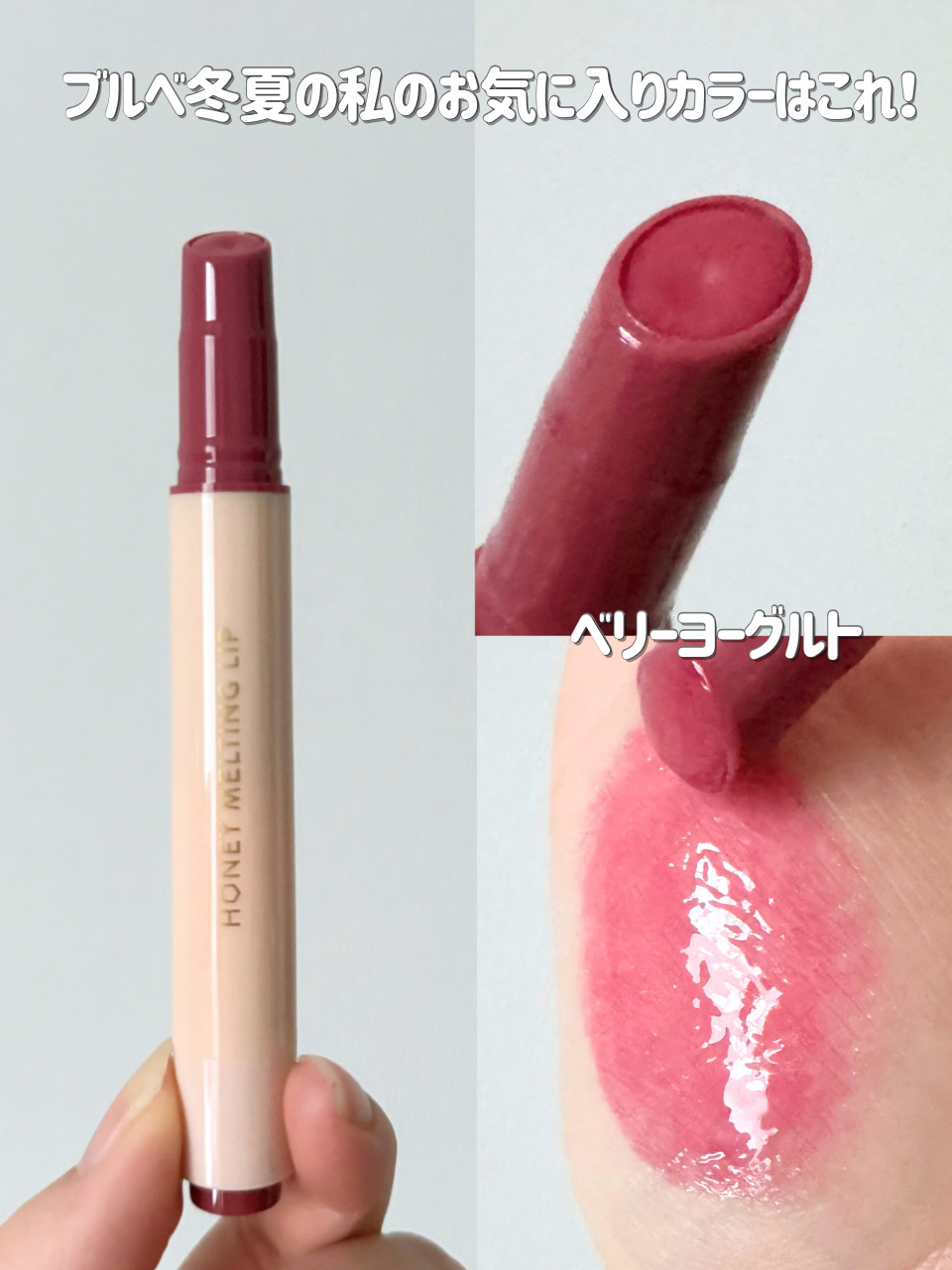 ネイチャーリパブリック ハニーメルティングリップ 01 アプリコットティー 02 イチジクミルク 03 ベリーヨーグルト 04 ザクロサワー 05 プラムワイン 06 チャイミルクティー #韓国コスメ #韓国リップ #ツヤリップ #冬顔メイクテクニック