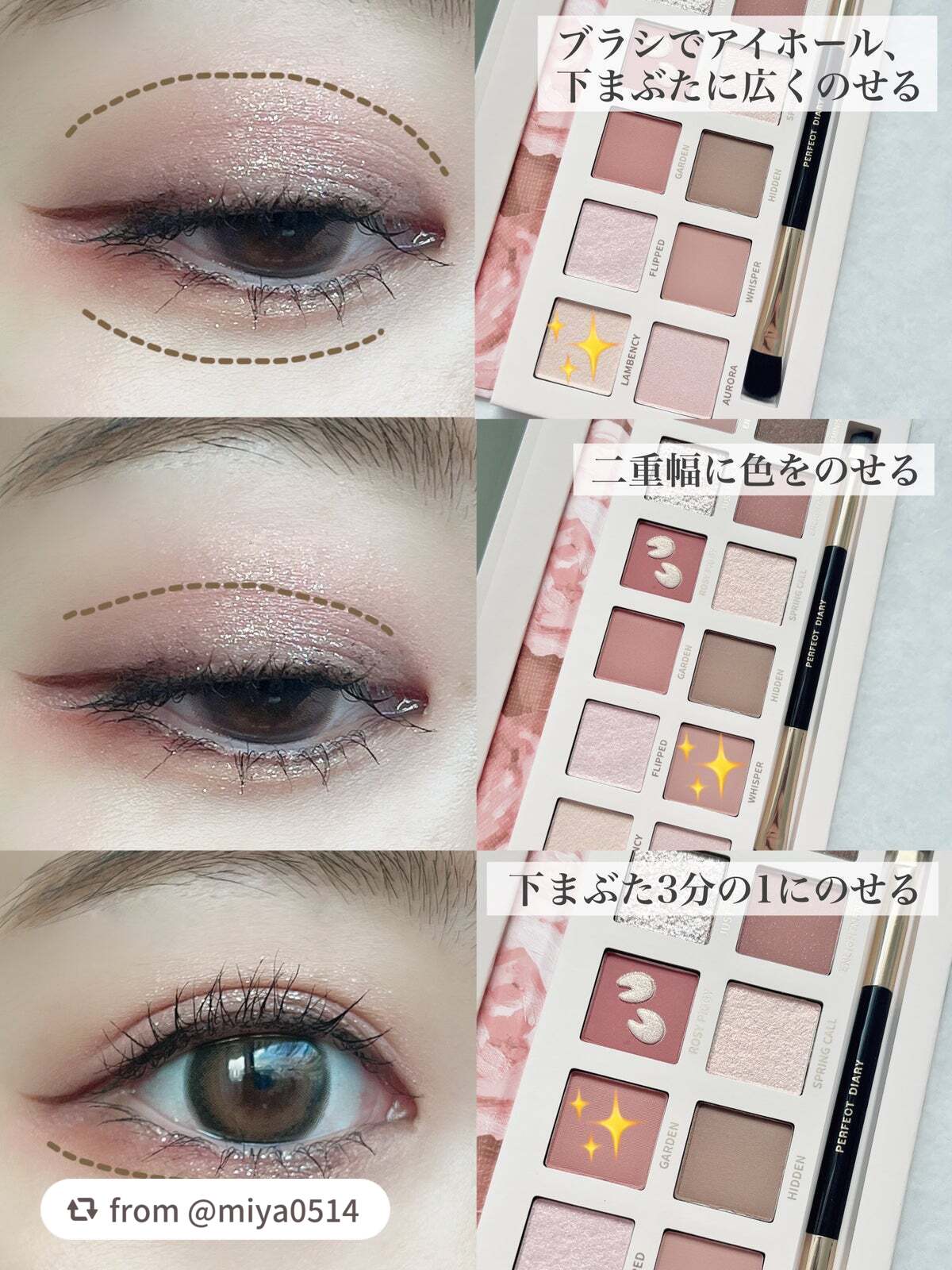 PERFECTDIARY/動物アイシャドウパレット ピッグマーメイドピンク、ドライローズピンク又マスタードイエローで組み合わせたパレット万能日常とともに、強いラメが儚げメイクでも簡単に実現できる浅いピンクをベース色として広めに塗りマスタードイ...