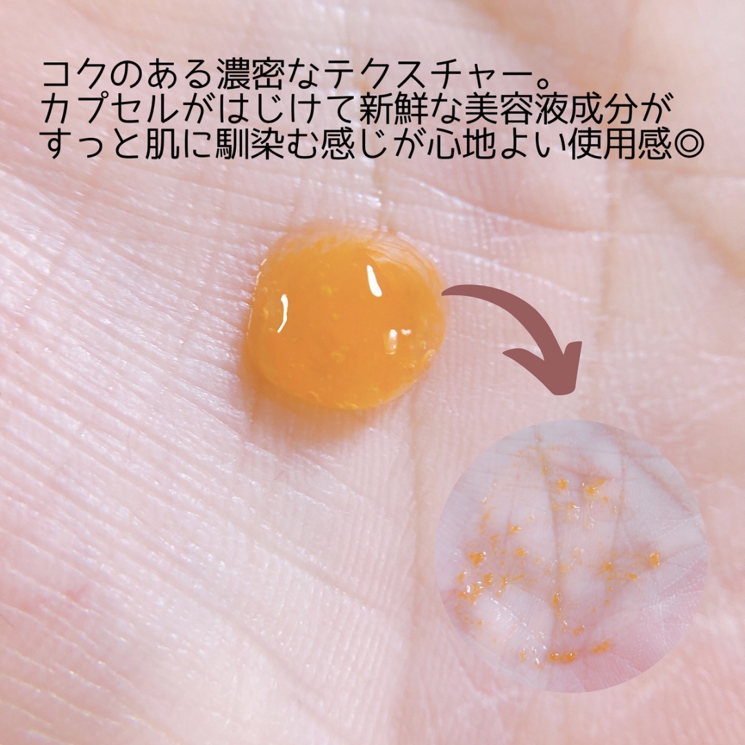 | コクのある濃密なテクスチャーでカプセルがはじけて新鮮な美容液成分がでてすっと肌に馴染む感じが心地よい使用感でした。 | 詳細を見る | |