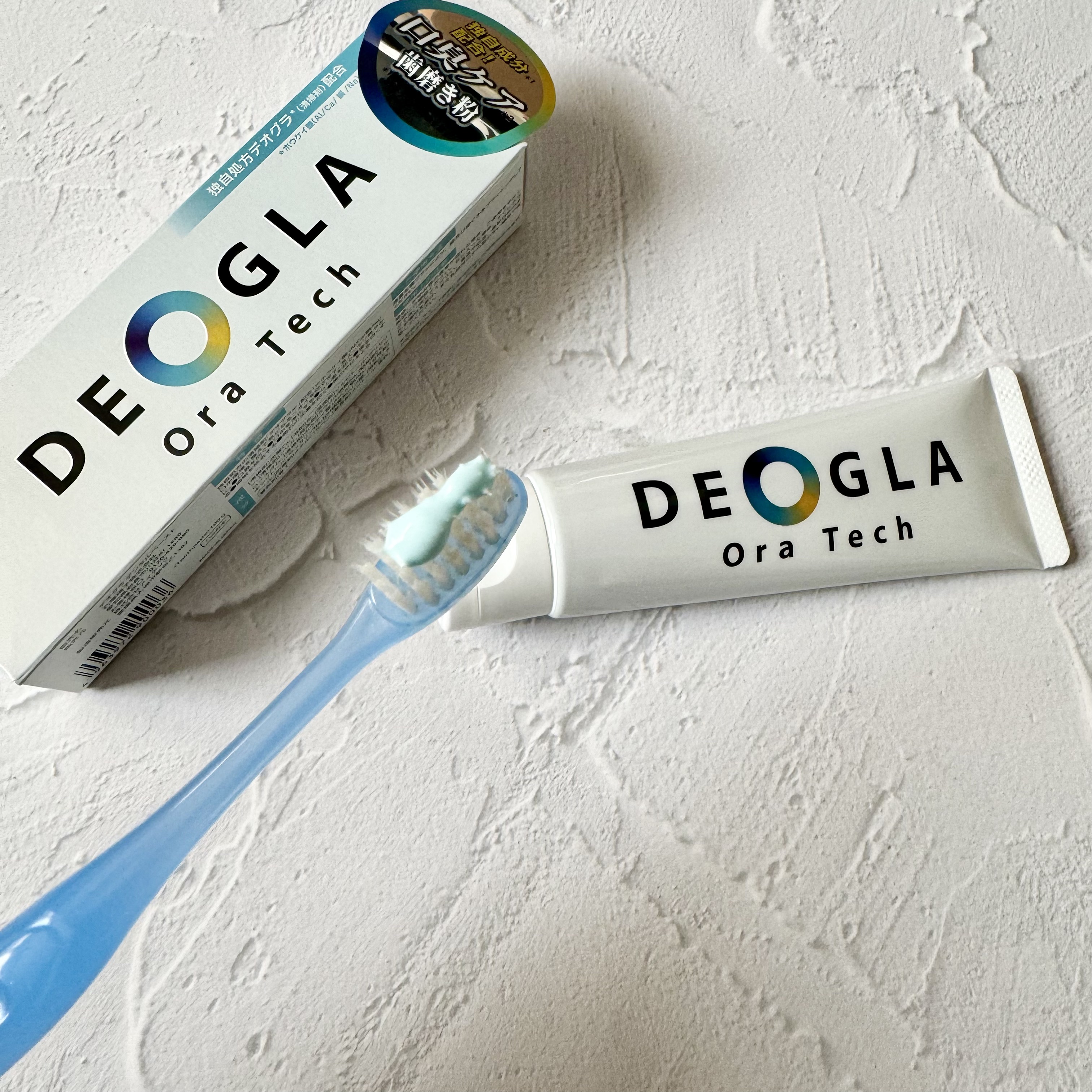 デオグラオーラテックは老舗の硝子メーカーが開発した歯磨き粉なんだよ‼️硝子メーカーなのが意外過ぎるよね🤗 口臭にアプローチしてくれる独自成分「DEOGLA」(清掃剤ホウケイ酸(AI/Ca/銅/Na))が配合されてるよ🎵 キレイなグリーンのペースト✨レモングラス香味だよ🤗あまりミントがキツイのは苦手だから、すごく使いやすい💓