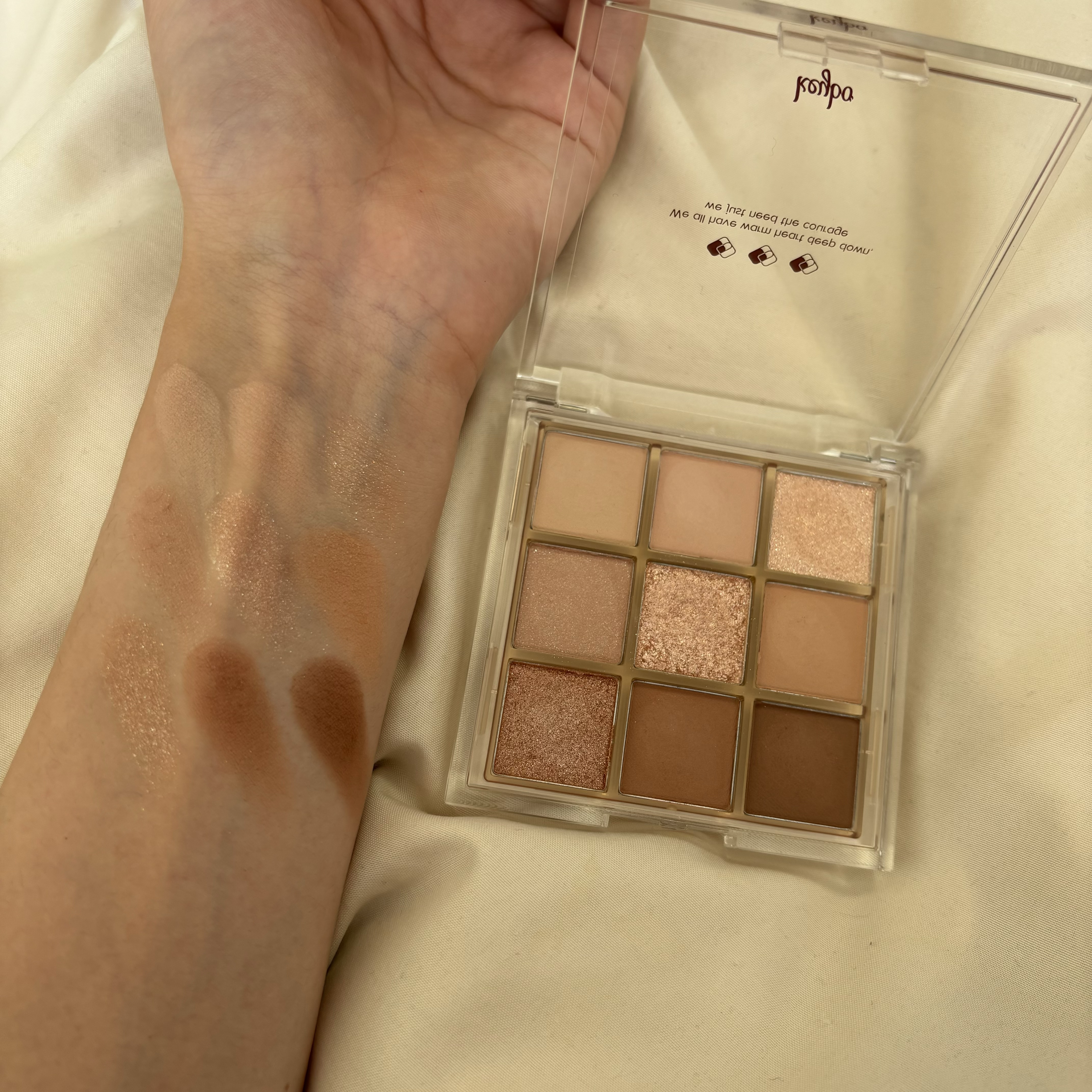 FALL IN LOVEシリーズは5色展開! 細かい粒子のパウダー ムラなくブレンディング 使いやすいマットカラーを中心に ポイントのラメ2色がめちゃくちゃ可愛い! アイシャドウだけでなくアイブロウやノーズシャドウにも使える万能パレット! スモーキーメイク好きなのでついつい手が伸びちゃうパレット