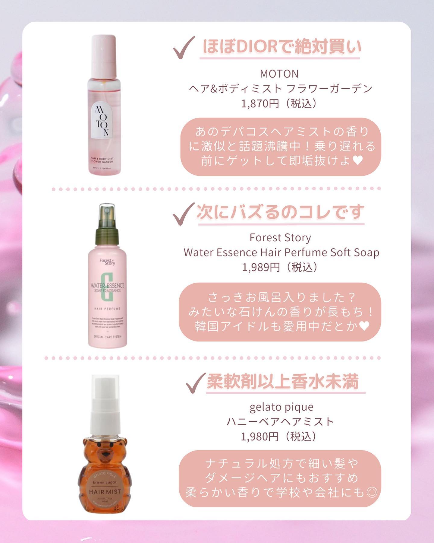 | ヘアケア・スタイリングランキング第171位 | ヘアミストなのできつすぎず、ふわ~っと優しいフローラルな匂いが漂います🍃 | 詳細を見る | |