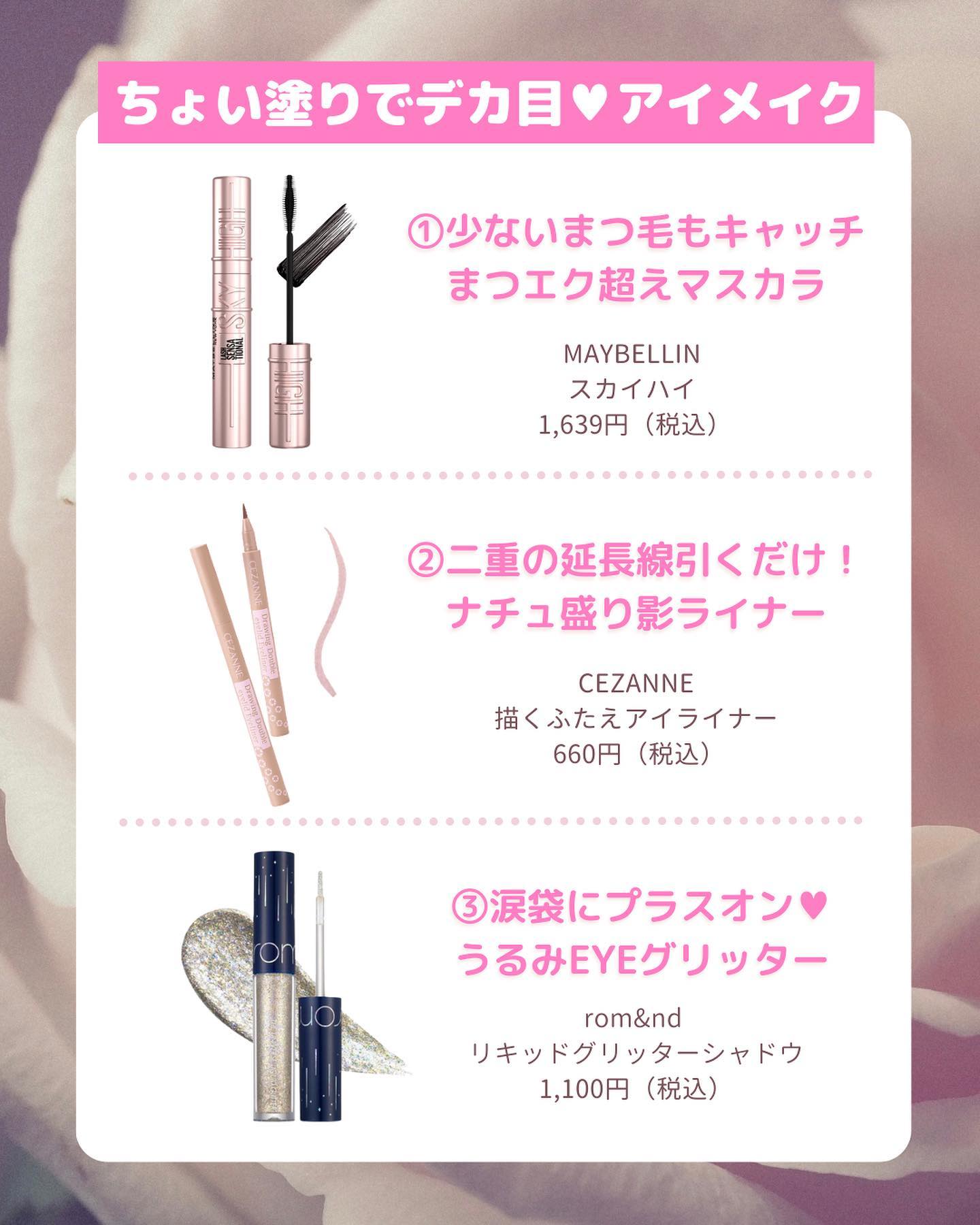.気になる投稿は後から見返せるように【保存】してね𖤣𖥧𖥣𖡡𖥧𖤣【初心者さん必見!メイクの順番✨】これでバッチリ💡①ベースメイク②眉メイク③アイメイク④リップメイク⑤チーク&ハイライトメイクの順番とポイントをまとめてみたよ!載せてる商品はわたし...