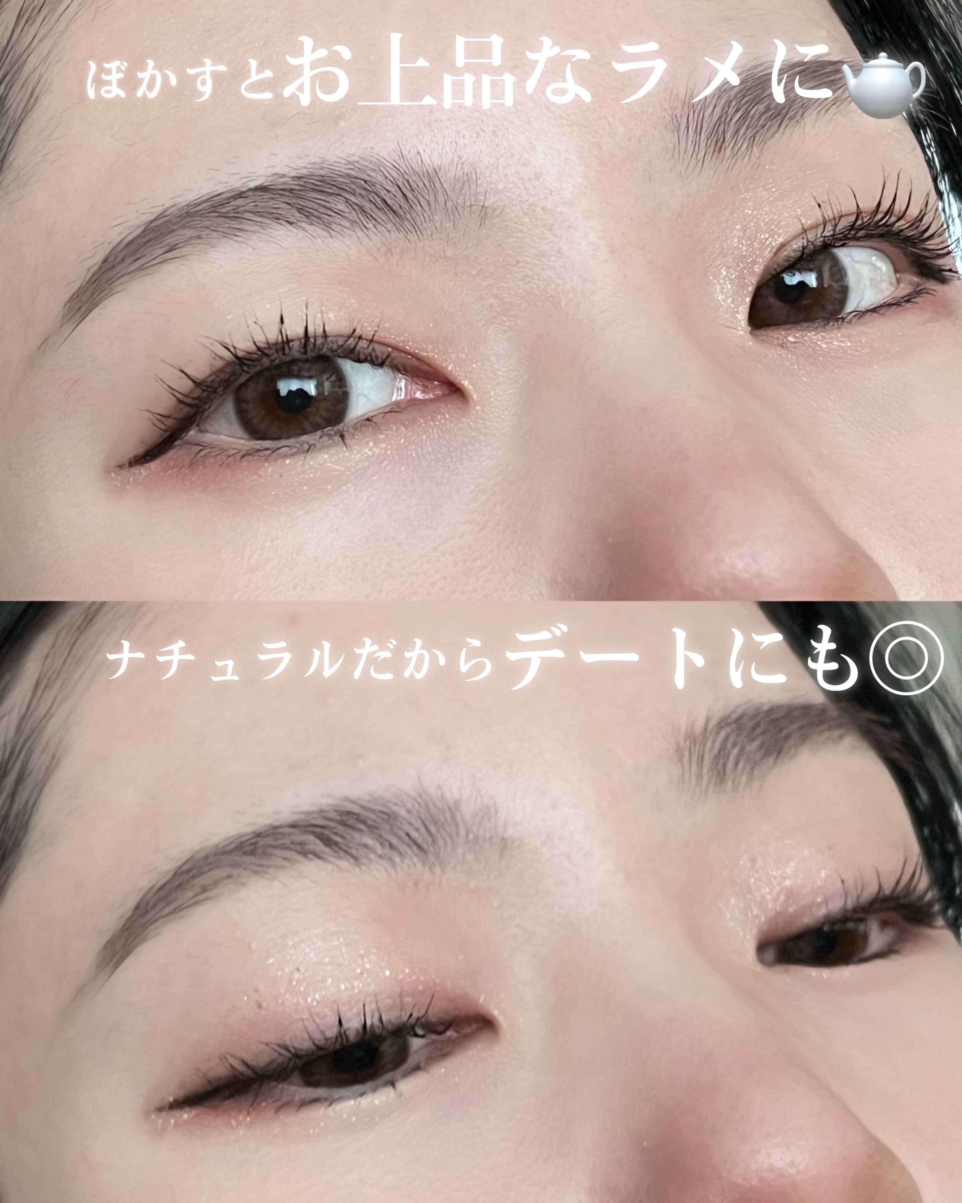 彩度が明るく顔色🙆♀️ イエベ春さんやブルベ夏さんがドンピシャで似合うであろう、爽やかなピンクが可愛い🥹 日常使いできるブラウンも🐻 下段はクールなブラウンでまとめてられていて、赤みや黄色味が苦手な方でも使える青みブラウン! 白いラメはキラキラ繊細ながら主張のあるラメ感が可愛い🤍 ピンクのラメはツヤ感のある大人っぽいラメ感✨ 2つの質感のラメが入っているのも嬉しい🥹