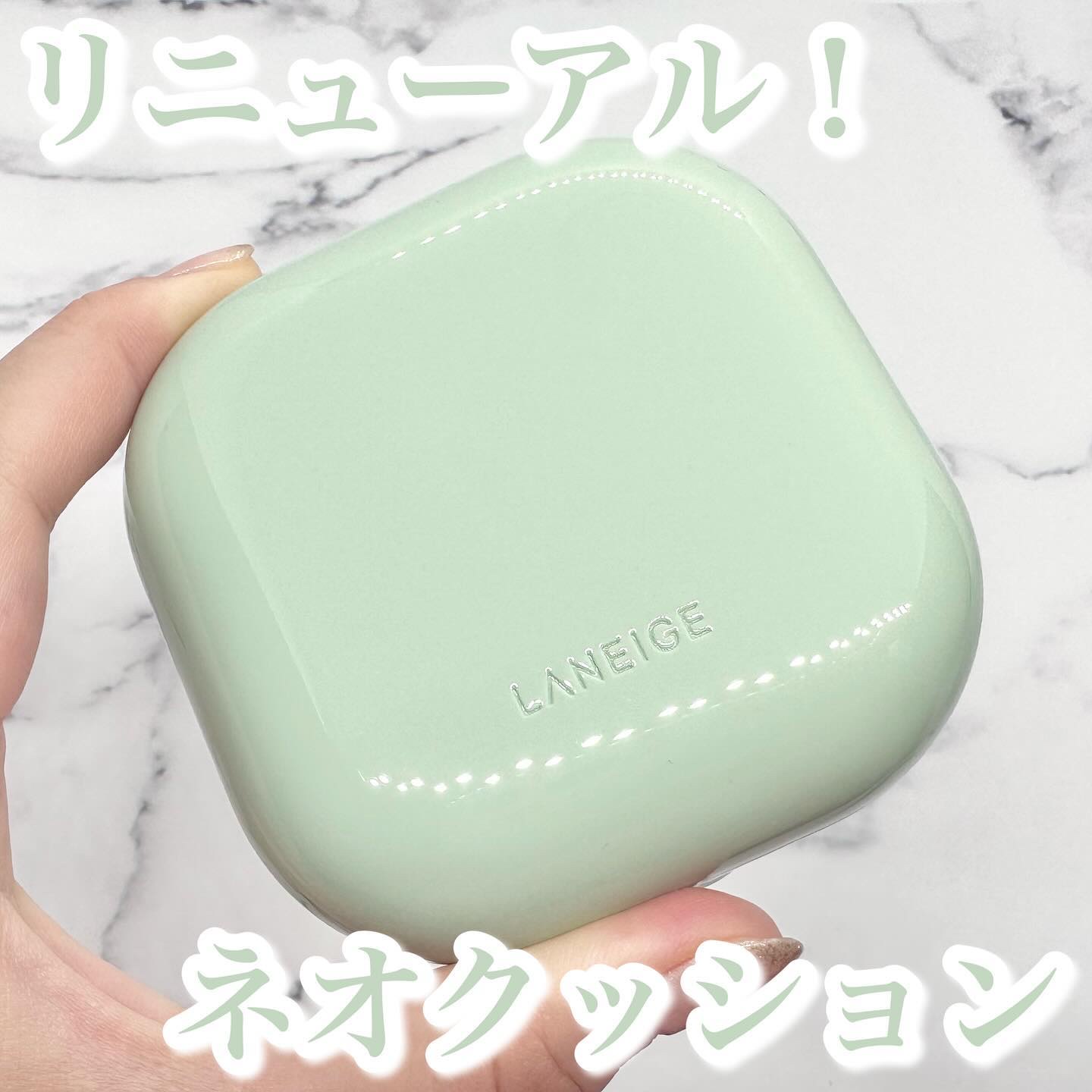 モニターで頂きました!ラネージュのネオクッションミュイマットとツヤの良いところどりをしたセミマットなクッションファンデだそうです!付けた感じは、結構みずみずしいなぁ〜と思いました!スキンケア成分89%配合との事でそのおかげでみずみずしさがある...