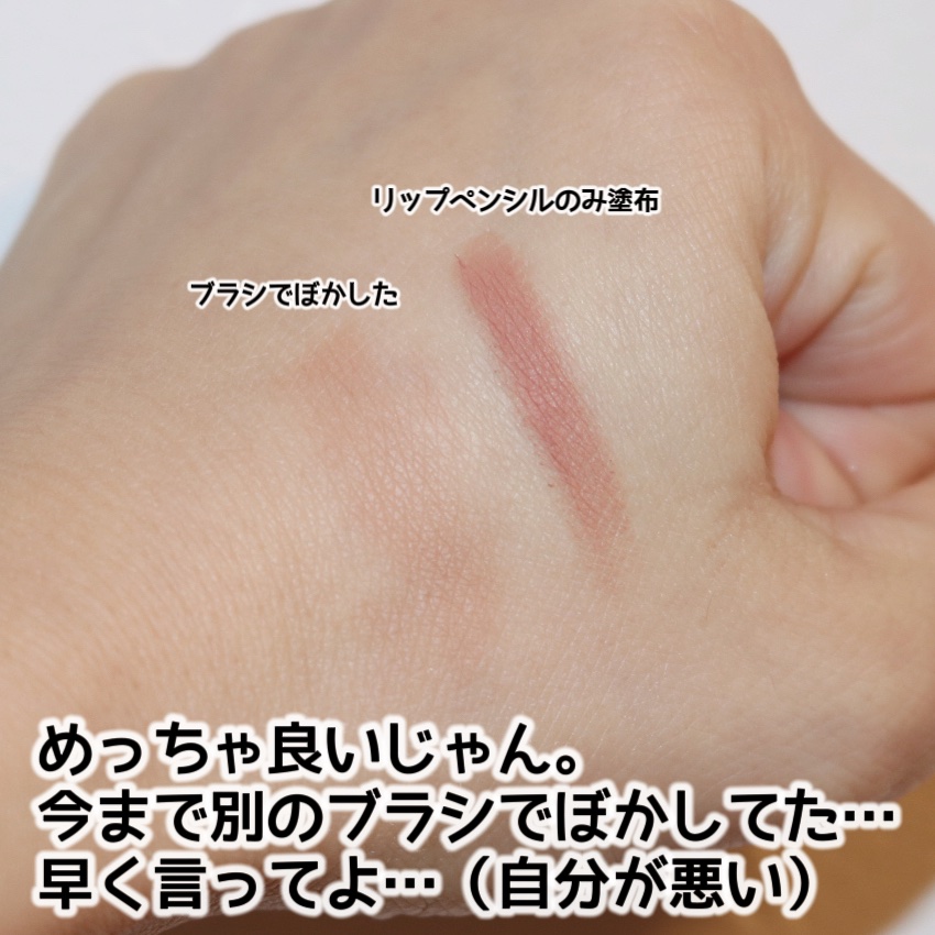 ブラシついてるんかーい!!!!!! 全く今まで気づかなかった🤣 今まで別のブラシでぼかしてた🤣 しかも適度なコシでぼかしやすいまである🤣 リップメイトペンシルの使用感は下から過去投稿をご覧ください✨
