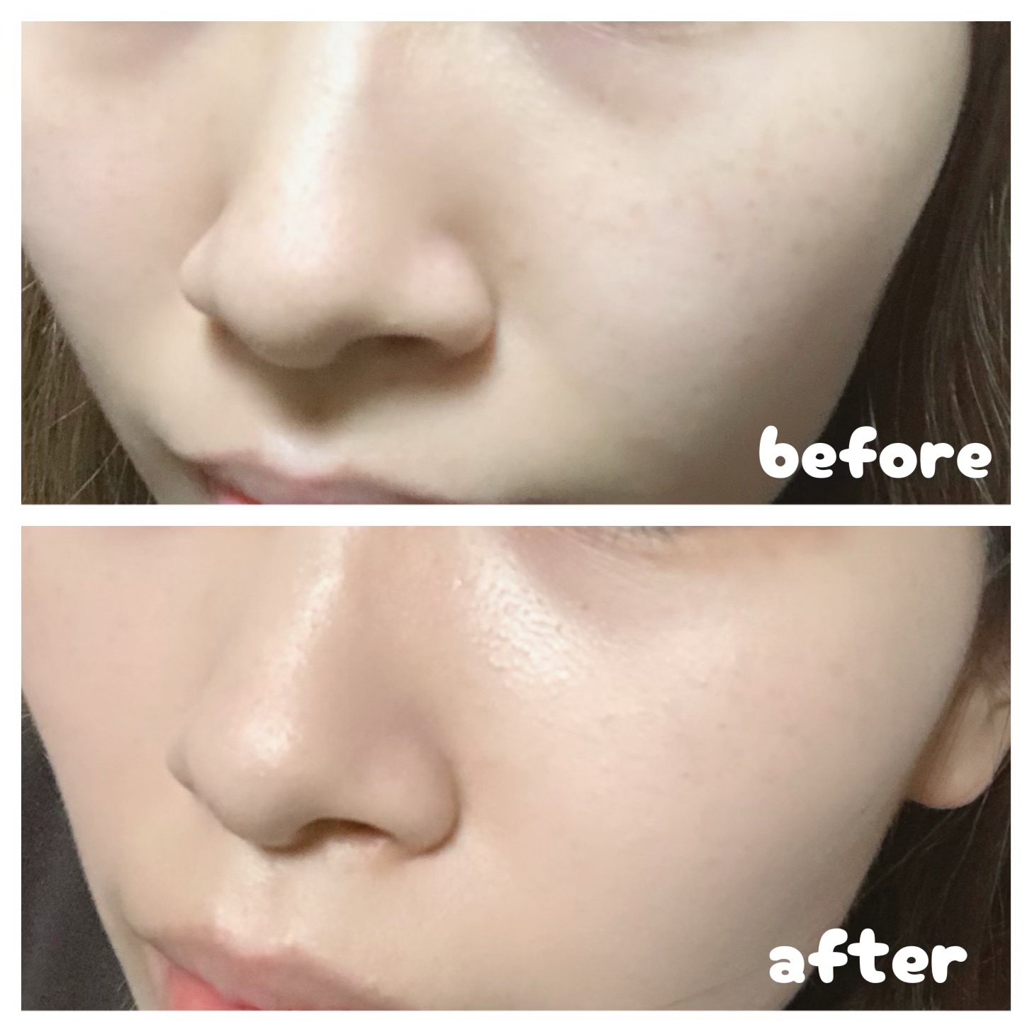 まず、1プッシュ出してみると一見めっちゃ白くてえ、これ馴染むのか…? みたいなクリームが出てきます😂 もっと薄く塗り広げるとキラキラ感とかはなく、ツヤ!って感じでめっちゃよかったです… ただ皮脂が多い鼻のあたりは少し崩れる感じがしたので、オイリー肌の人よりも乾燥肌な人向けな感じはしました🥺