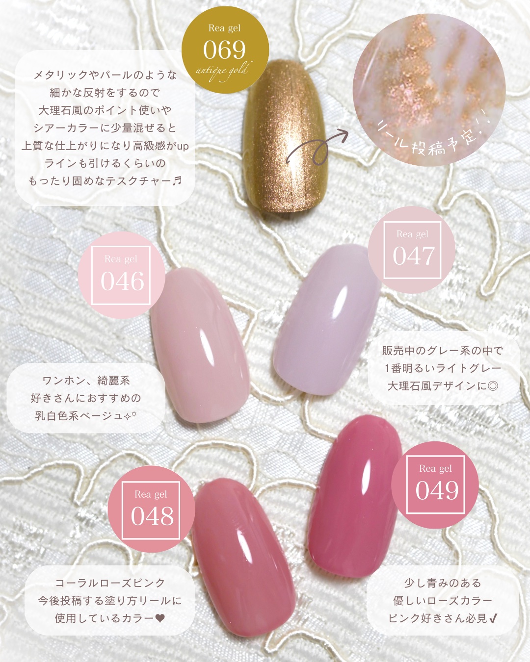 069は動画では明るくみえていますが ブロンズのような濃いめの 超微粒子のラメのカラーです😊💕 ミックスする場合はホワイト系のカラーは くすみが出てしまうのでピンク系やベージュ そして動画内で紹介しているカラーがオススメです♥️ 上品なラメをカラーをお探しの方は 是非ミックスしてサロンオリジナルカラーとして お客様にご提案してみてください🥹✨️