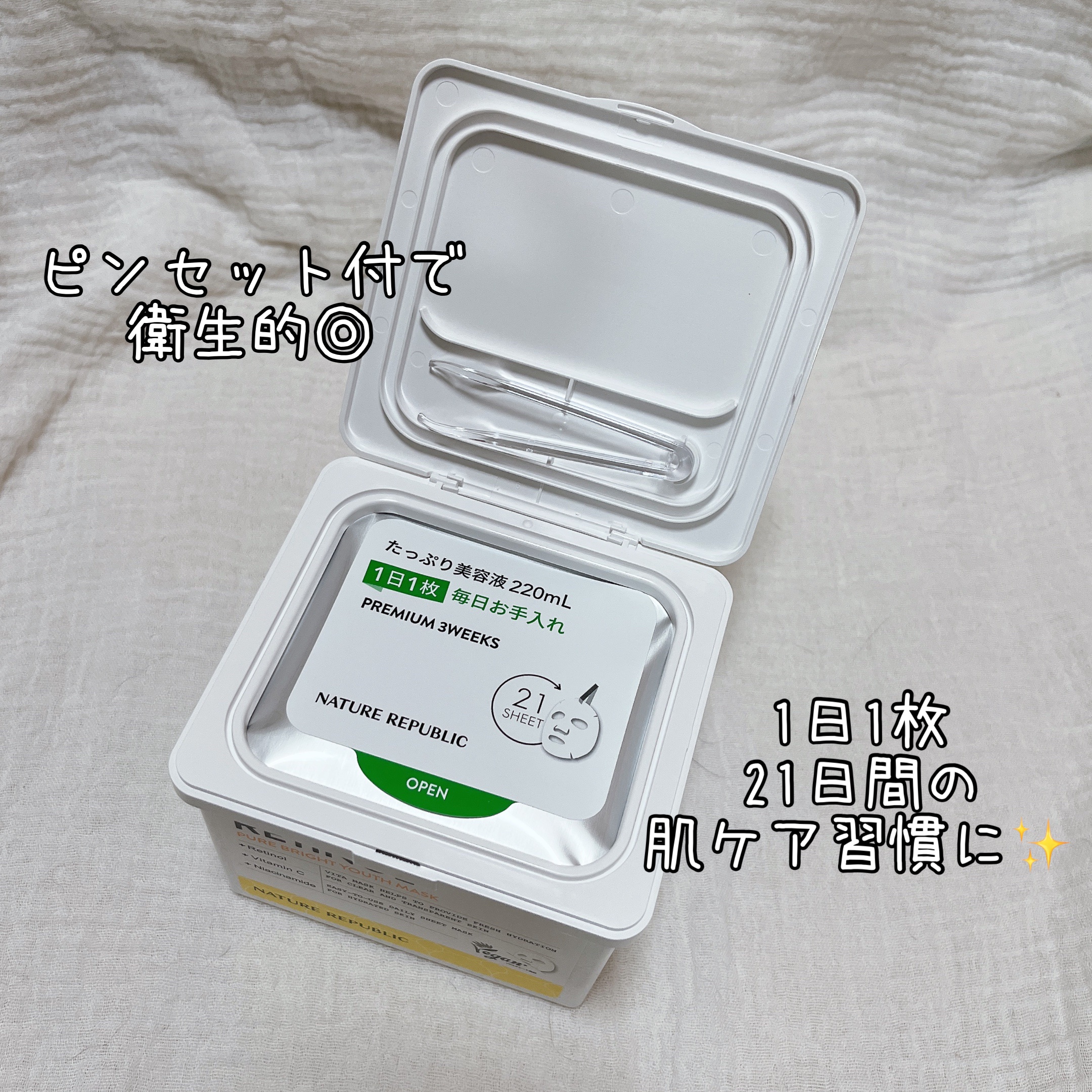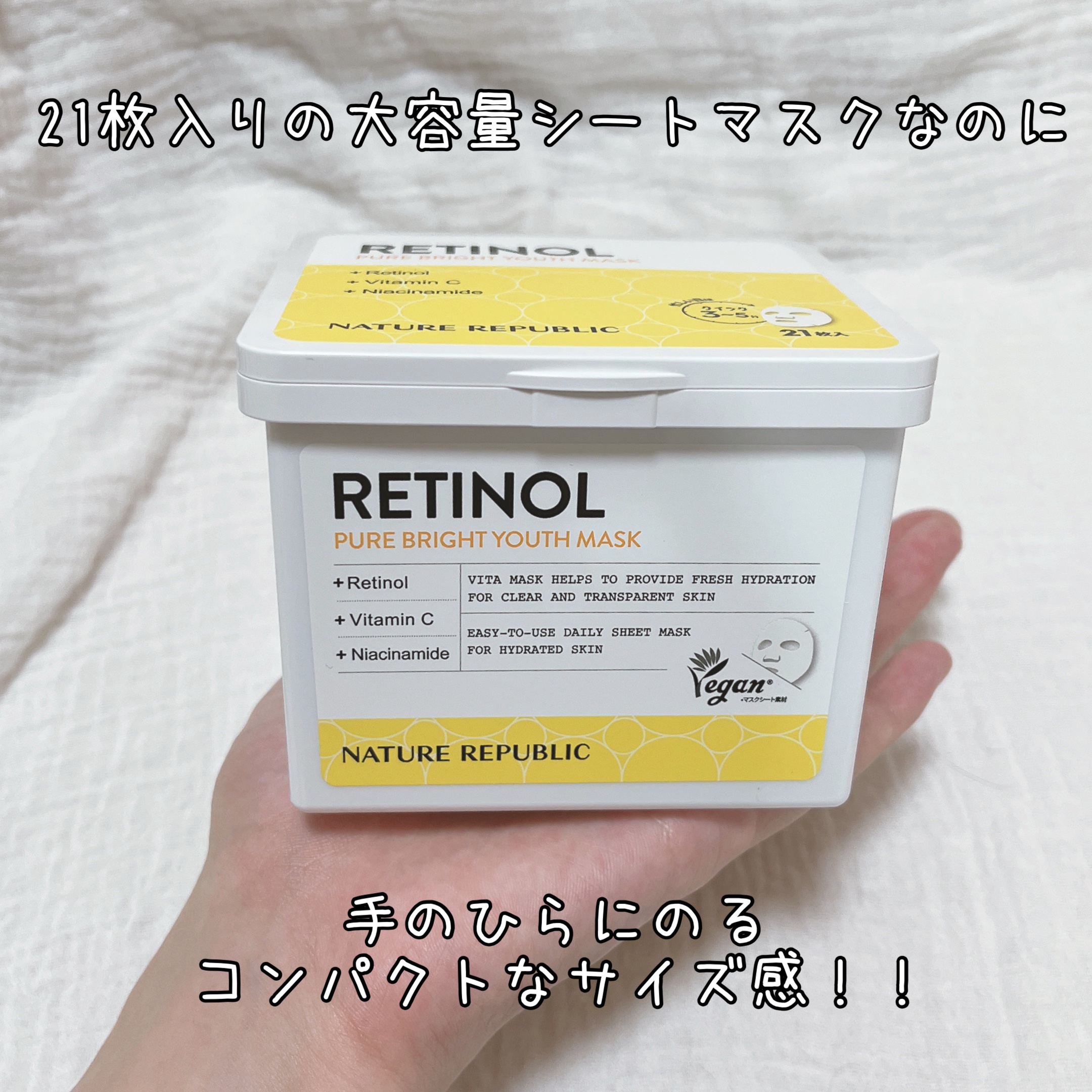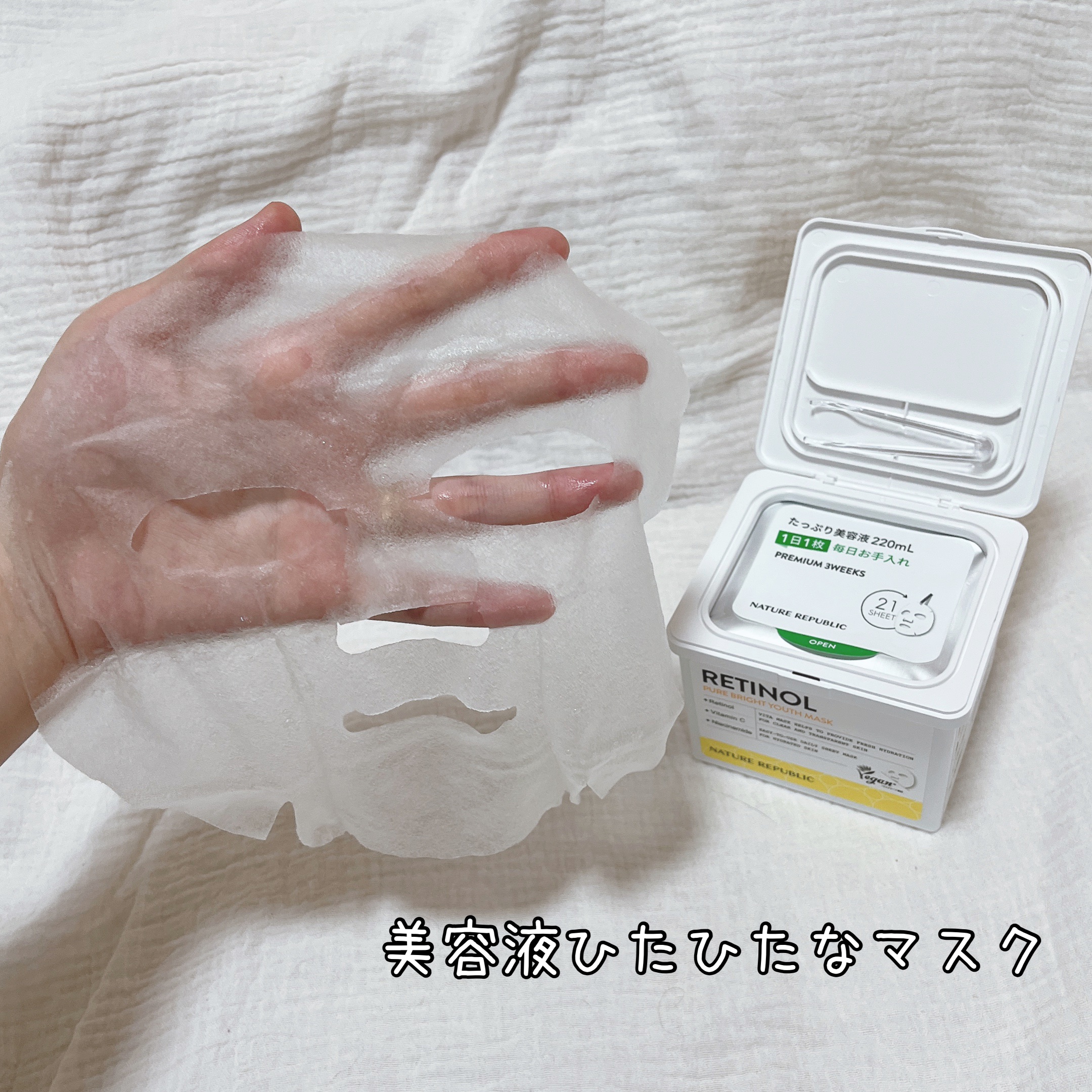 .#PR★ネイチャーリパブリック レチノールデイリーシートマスク化粧水代わりに毎日使えるデイリーシートマスク✨3分間貼るだけなので気軽に使えるのがいい。リニューアルして21→30枚入りになったのも嬉しい🥳しっとりべたつかない使用感で、薄くてピ...