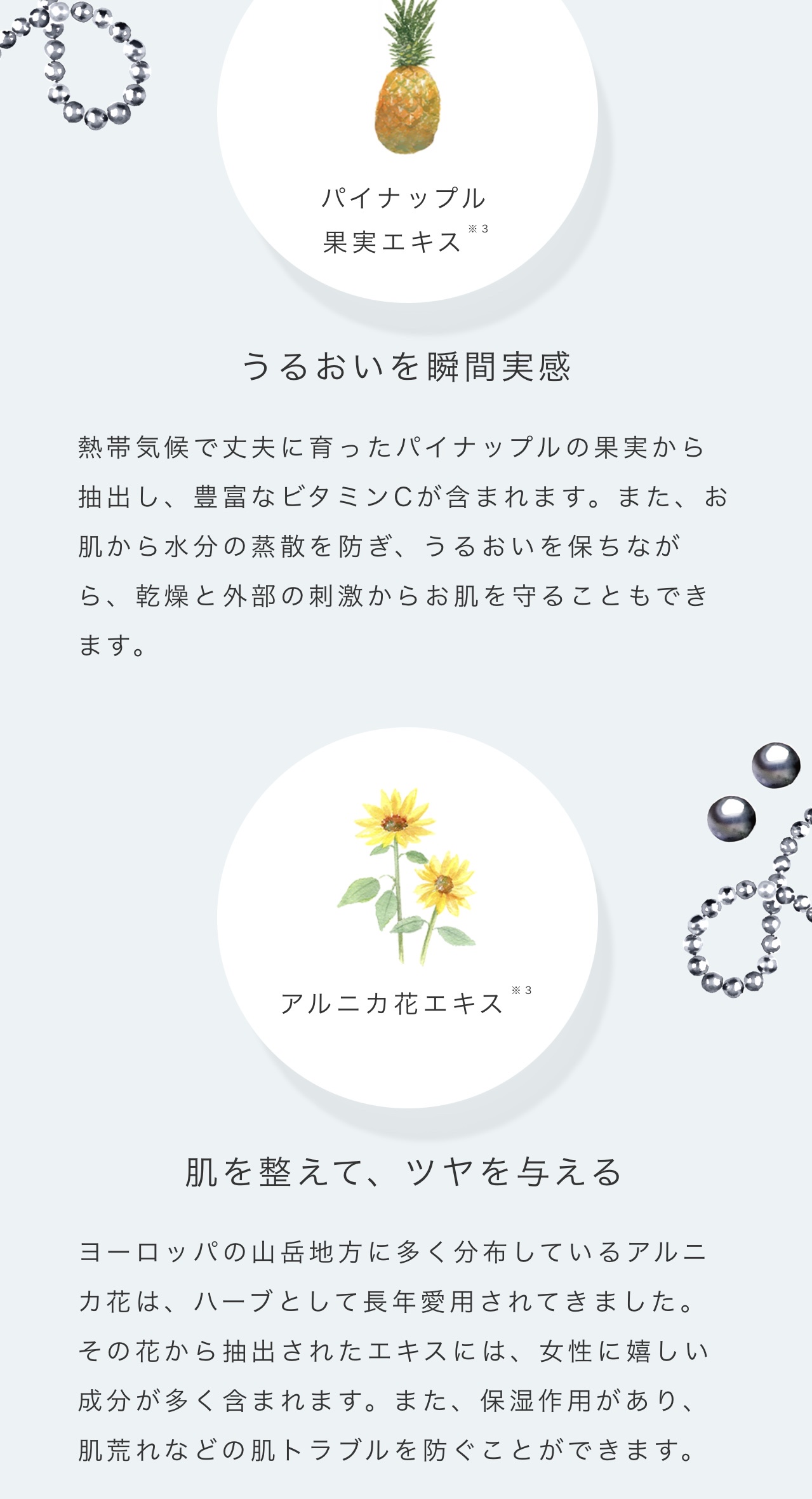 - 加水分解パールと共に、黒真珠の有名なタヒチ産ブラックパールを配合。 アミノ酸、ビタミン、ミネラルで。滑らかで、みずみずしい透潤美肌へ。 また、お肌への優しさを考えてパラベン、アルコール、鉱物油、色素、蛍光剤を使用していません。 天然パルプ100%をウォータージェット製法で綿密に織った極薄シートでお肌にぴったり密着します。 個包装なので、毎日衛生的にご使用いただけます。 使い方 洗顔後に化粧水でお肌を整えます。 1.袋からマスクを取り出し、白いプラシートのついていない面をお顔に密着させて広げる。その後、白いプラシートを剥がす。 2.10分経過後にマスクをはがす。時間に余裕がある場合は20~30分置いていただくとよりお肌に潤いを与えます。 3.お顔に美容液が残っているときは、指先で軽くマッサージしながらなじませる。 ※水で洗い流す必要はありません。マスクケア後は乳液やクリームなどで普段のお手入れを行ってください。