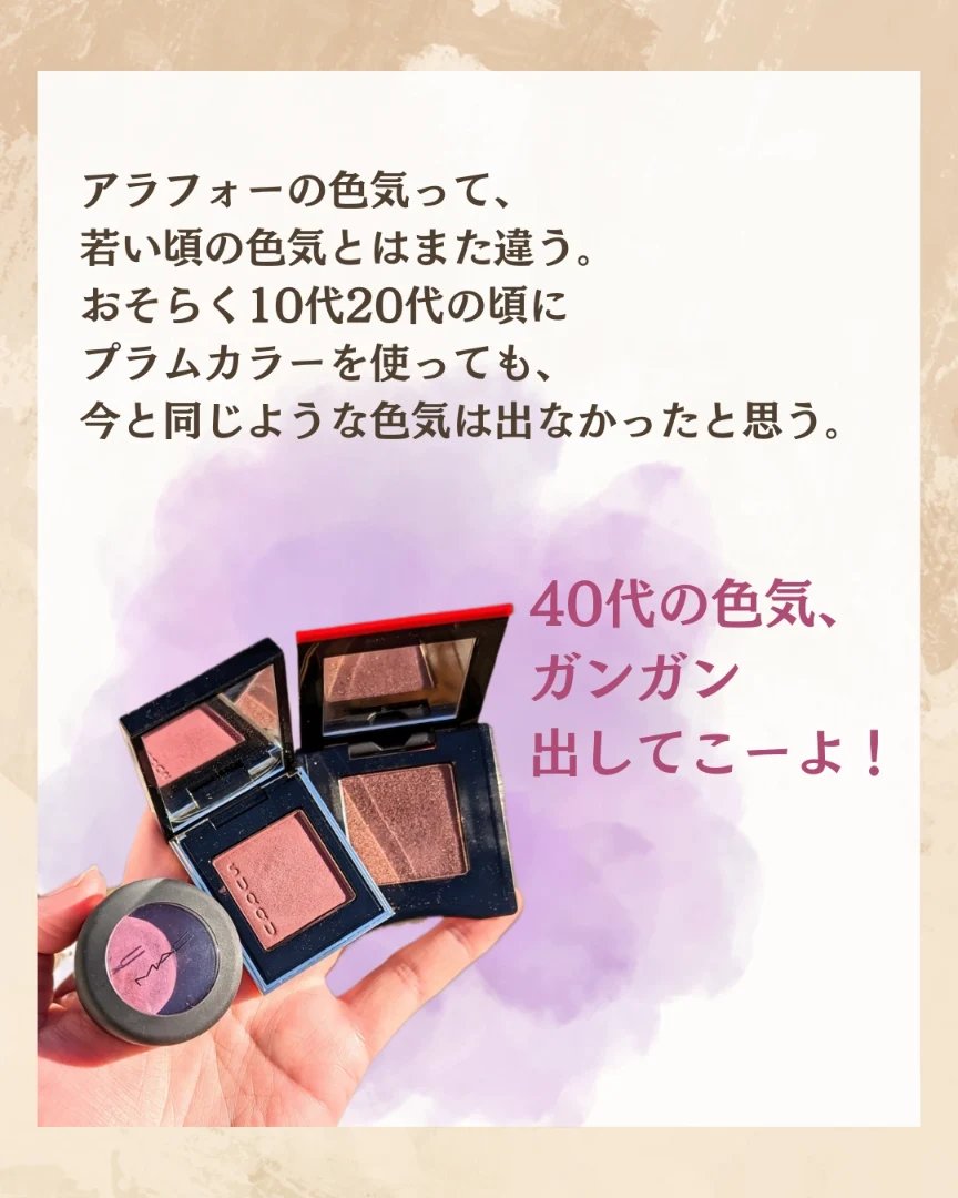 パープル×ライラックのふわっと透明感が美✨ 美容院とコスメカウンター×2で褒めていただいて、有頂天になったメイク🥹🩷笑 このパープルパレット、パレットだけで完結すると透明感はあるけど、割と深みも出るのよ私は。 やっぱりこの子万能選手。ベースに入れるだけで、ふんわり血色感に透明感まで出してくれる🫧