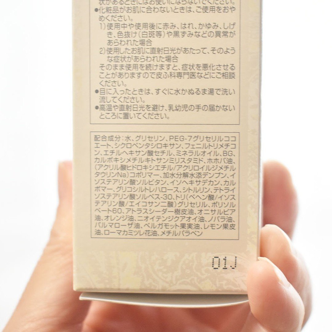 - <400g> 水、グリセリン、PEG-7グリセリルココエート、シクロペンタシロキサン、フェニルトリメチコン、エチルヘキサン酸セチル、ミネラルオイル、BG、カルボキシメチルキトサンミリスタミド、ホホバ油、(アクリル酸ヒドロキシエチル/アクリロイルジメチルタウリンNa)コポリマー、加水分解水添デンプン、イソステアリン酸ソルビタン、イソヘキサデカン、カルボマー、グリコシルトレハロース、シトルリン、テトライソステアリン酸ソルベス-30、トリ(ベヘン酸・イソステアリン酸/エイコサン二酸)グリセリル、ポリソルベート60、アトラスシーダー樹皮油、オニサルビア油、オレンジ油、ニオイテンジクアオイ油、ノバラ油、パルマローザ油、ベルガモット果実油、レモン果皮油、ローマカミツレ花油、メチルパラベン <200g> 水、グリセリン、PEG-7グリセリルココエート、シクロペンタシロキサン、フェニルトリメチコン、エチルヘキサン酸セチル、ミネラルオイル、BG、カルボキシメチルキトサンミリスタミド、ホホバ油、(アクリル酸ヒドロキシエチル/アクリロイルジメチルタウリンNa)コポリマー、加水分解水添デンプン、イソステアリン酸ソルビタン、イソヘキサデカン、カルボマー、グリコシルトレハロース、シトルリン、テトライソステアリン酸ソルベス-30、トリ(ベヘン酸・イソステアリン酸/エイコサン二酸)グリセリル、ポリソルベート60、アトラスシーダー樹皮油、オニサルビア油、オレンジ油、ニオイテンジクアオイ油、ノバラ油、パルマローザ油、ベルガモット果実油、レモン果皮油、ローマカミツレ花油、メチルパラベン <10周年記念限定ボトル> 水、グリセリン、PEG-7グリセリルココエート、シクロペンタシロキサン、フェニルトリメチコン、エチルヘキサン酸セチル、ミネラルオイル、BG、カルボキシメチルキトサンミリスタミド、ホホバ油、(アクリル酸ヒドロキシエチル/アクリロイルジメチルタウリンNa)コポリマー、加水分解水添デンプン、イソステアリン酸ソルビタン、イソヘキサデカン、カルボマー、グリコシルトレハロース、シトルリン、テトライソステアリン酸ソルベス-30、トリ(ベヘン酸・イソステアリン酸/エイコサン二酸)グリセリル、ポリソルベート60、アトラスシーダー樹皮油、オニサルビア油、オレンジ油、ニオイテンジクアオイ油、ノバラ油、パルマローザ油、ベルガモット果実油、レモン果皮油、ローマカミツレ花油、メチルパラベン
