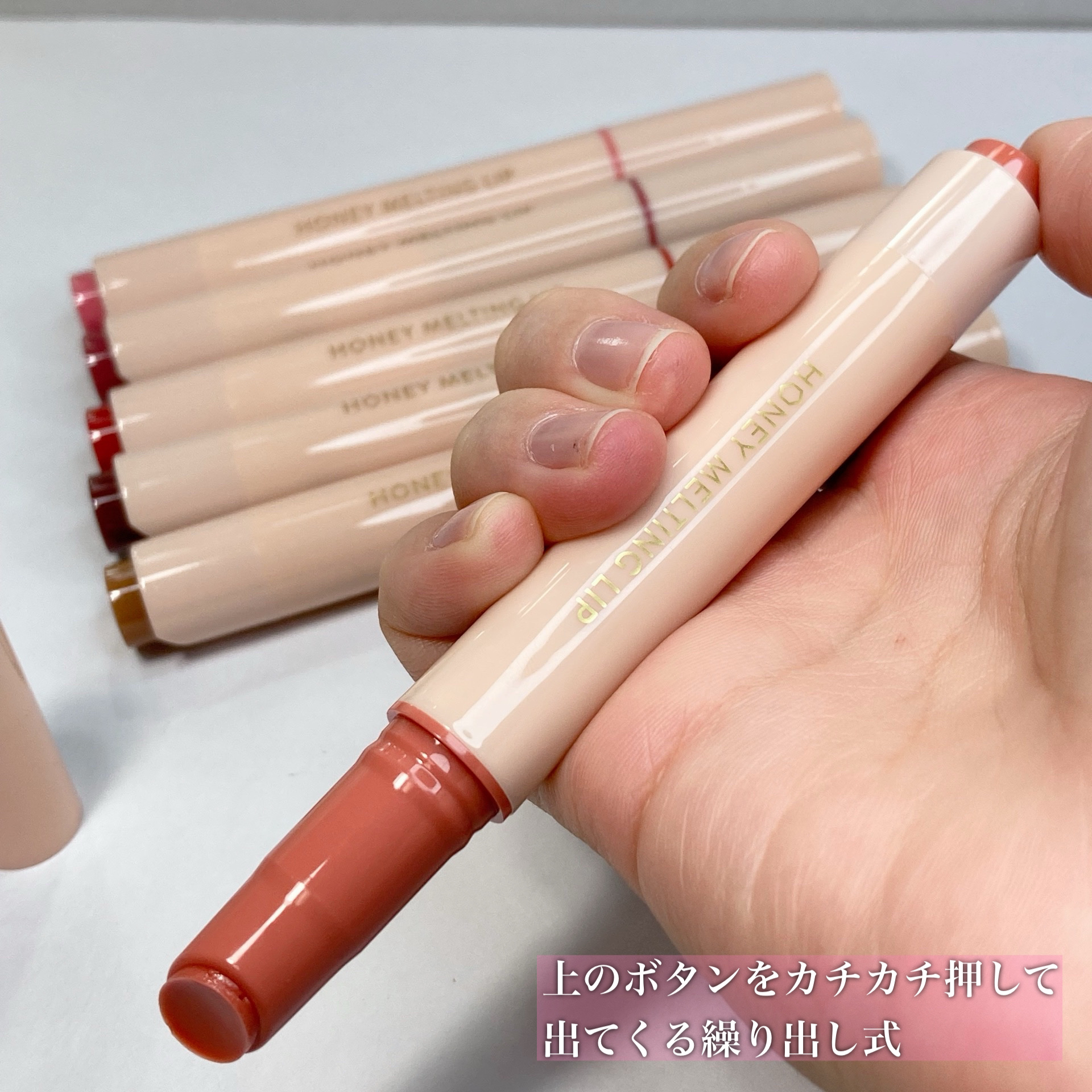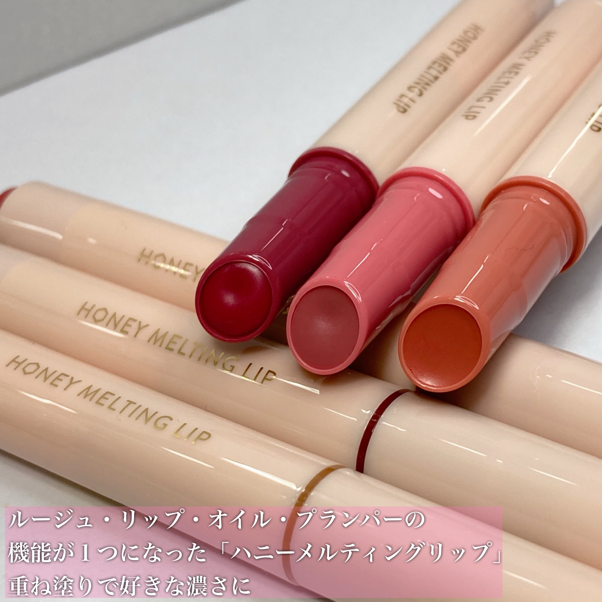 - 韓国では実店舗、オンラインともに完売が続出し、なかなか手に入らないと話題になっている「ハニーメルティングリップ」。 ルージュのように発色し、リッププランパーをつけたかのようなボリューム感を出すことができるリップです。 ハチミツエキス、バラエキス(*)、8種の天然由来オイル(*1)が配合されており、リップオイル効果で韓国アイドル風のあどけない唇を演出できます。 高発色なのにとろける“むっちり唇” 3in1〚ルージュ/高発色〛〚むっちりプランパー/立体感〛〚リップオイル/高保湿〛いいトコ取りの欲張りリップで韓国アイドル風のあどけないぷるぷるリップに演出! *センチフォリアバラ花エキス *1.アーモンド油、アルガニアスピノサ核油、アンズ核油、オリーブ果実油、シア脂、ツバキ種子油、ホホバ種子油、月見草油 (*ー*1.全て保湿成分) 2023年11⽉13⽇(月):ネイチャーリパブリック公式サイト 12月8日(金):全国のバラエティショップ、マツモトキヨシグループ、ココカラファイングループ、ドン・キホーテにて順次発売