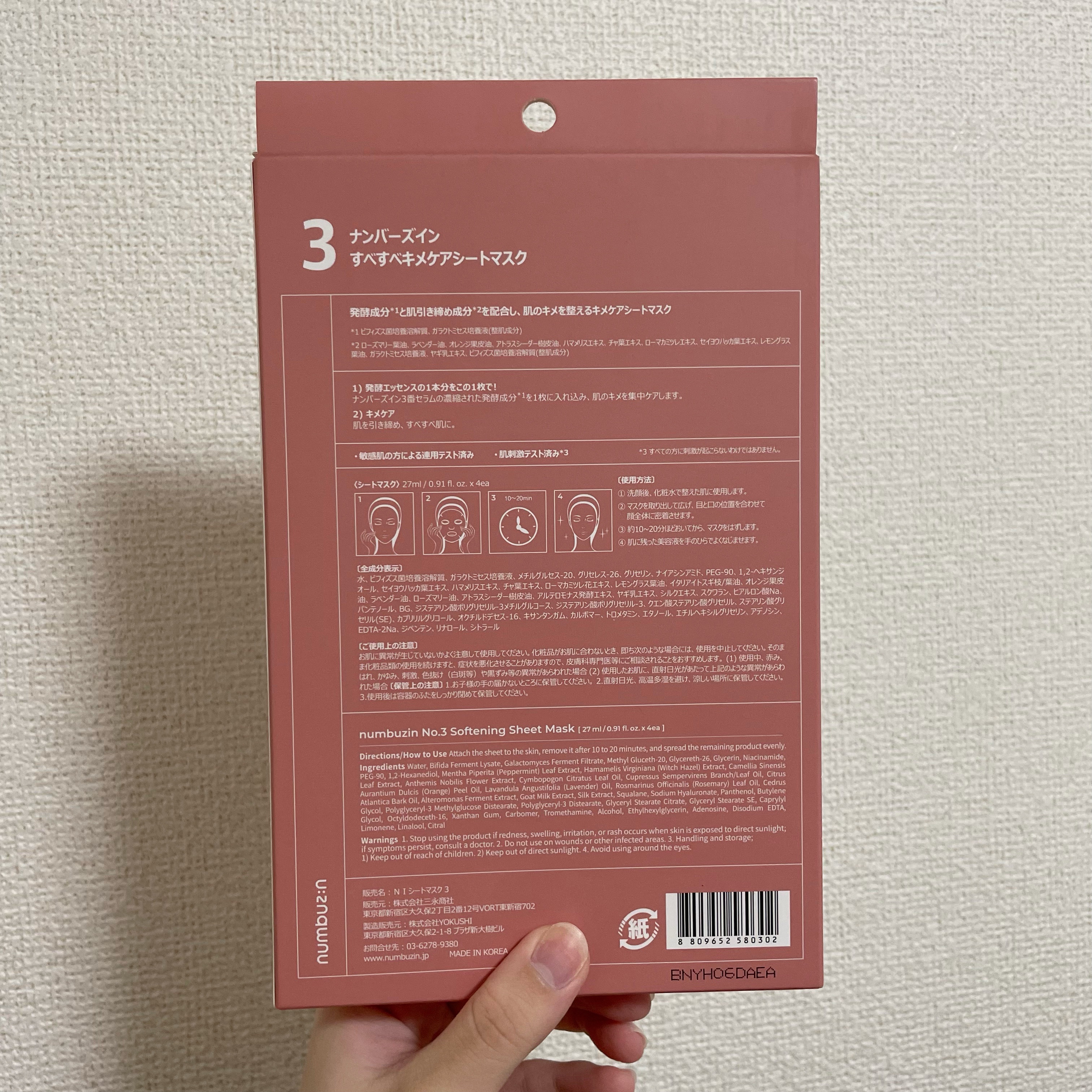 商品詳細情報numbuzin 3番 すべすべキメケアシートマスク