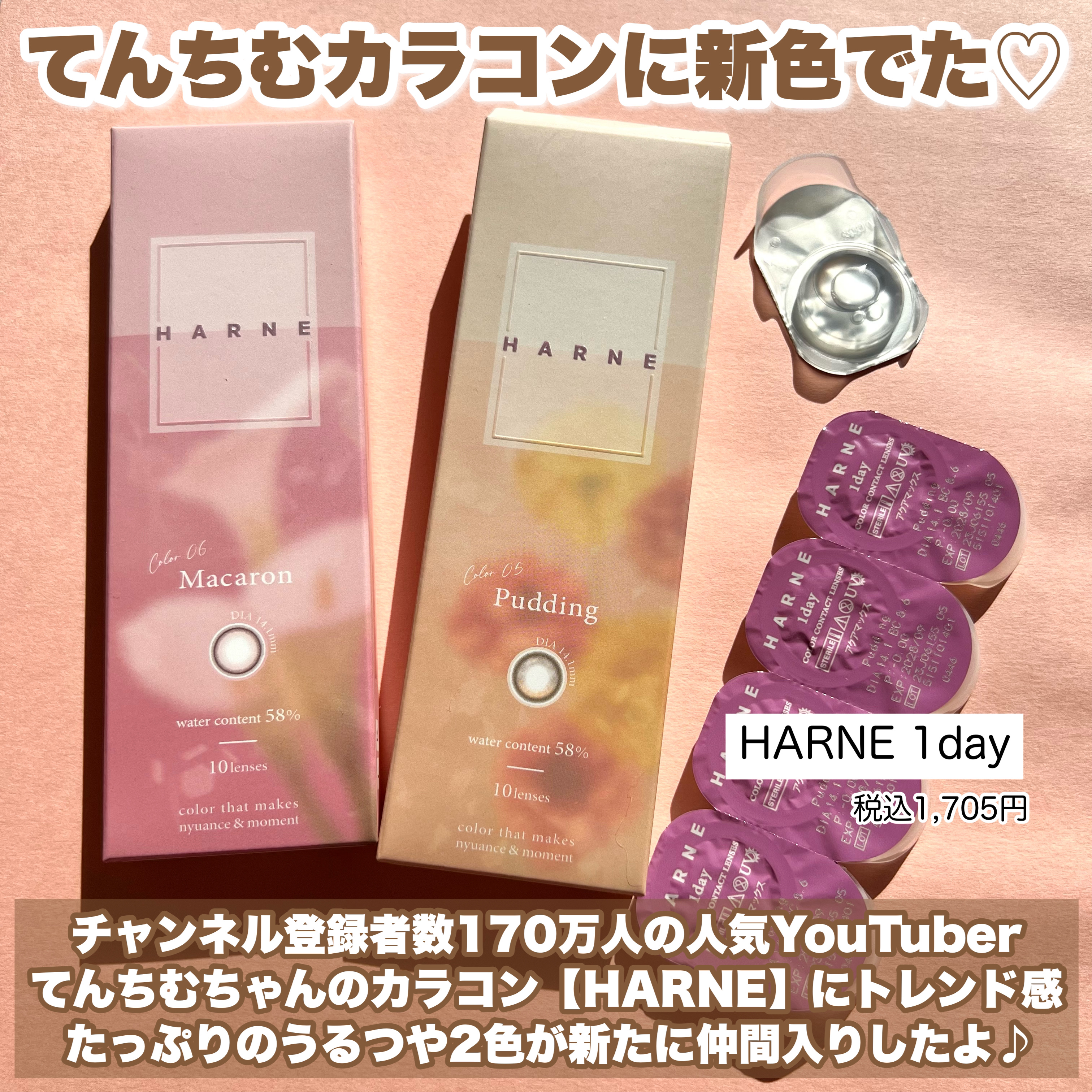 HARNE新色としてマカロンの色違いカラー フィナンシェ&チャイナブルーが登場したよ🪽 てんちむちゃんのこだわりポイントはズバリ色!浮いたり馴染みが悪くならないように色素薄い色を狙いすぎない程よいうっすらベージュ✨ 黒目がつけても派手見えしない絶妙なニュアンスブルーが綺麗すぎる💎