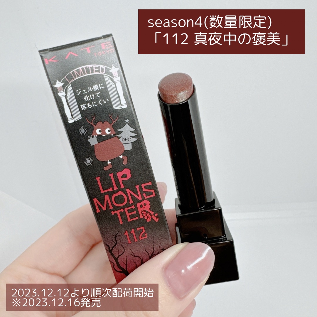 - 落ちにくさも美発色もよくばりたい、つけたての色が長時間持続する人気の口紅リップモンスター。 唇から蒸発する水分を活用して密着ジェル膜に変化する独自技術※で、つけたての色が長時間持続。 高発色&保湿。 ※当社独自の色持ち技術 ■花火のようにまぶしくきらめく 繊細なラメが際立つ限定色 EX-6 ピンクカラー×青ラメ【ロケット花火流星群】 EX-7 オレンジカラー×黄&緑ラメ【100万発の線香花火】 EX-8 レッドカラー×緑ラメ【打ち上げ花火ブランコ】 ■深みレッド系カラーの限定色 EX-9 戦慄の喜笑 (限定色) EX-10 狂気の怒号 (限定色) 【2025クリスマスコフレ】 落ちにくいリップモンスターから、唇の血色感を底上げする ホリデーシーズン限定の熱感ニュアンスベージュ系カラー登場。 EX-11 紅煙宿る贈り物(限定色):ボルドーベージュ系 EX-12 盗まれた1224mの星光(限定色):キャメルベージュ系