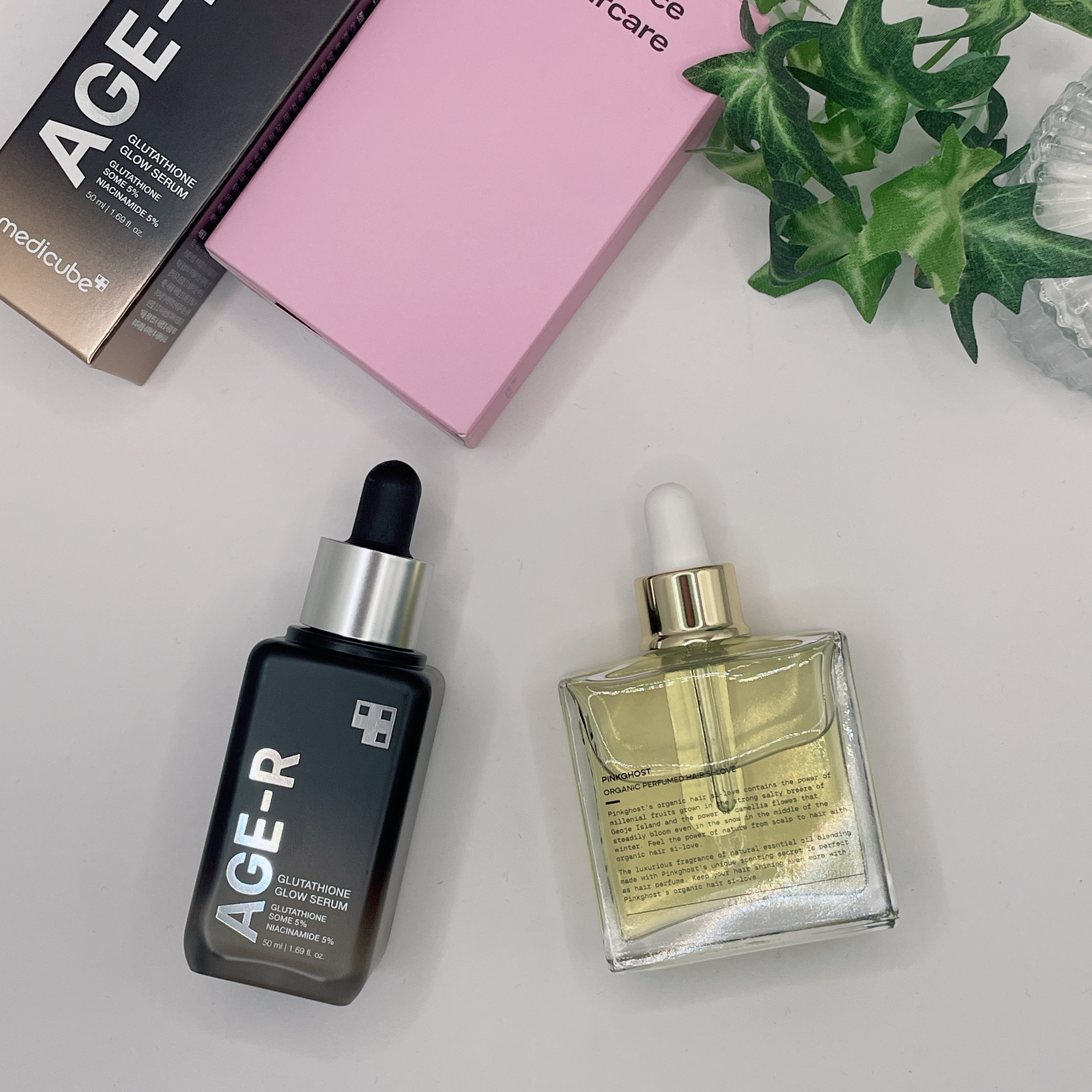 お気に入りヘアケアアイテムの PINKGHOSTオーガニックヘアシロップ ホワイトジャスミンの香りを使い切ったので 気になっていた ローズバニラ🌹の香り❤️を購入✨ バニラの甘い香りと、後から香るローズの上品な香り🤤 めちゃくちゃ良い香りでお気に入りです♪ MEDICUBEはコラーゲンシリーズを使って 肌の調子が良くて☺️ お気に入りのスキンケアブランドの1つ♪ 流行りのグルタチオン成分が気になって購入してみたょ♡ 香りもフローラル調でコラーゲンシリーズと似てる✨ 大好き小田切ヒロさんも紹介してたみたいで 期待しかないっ🥳