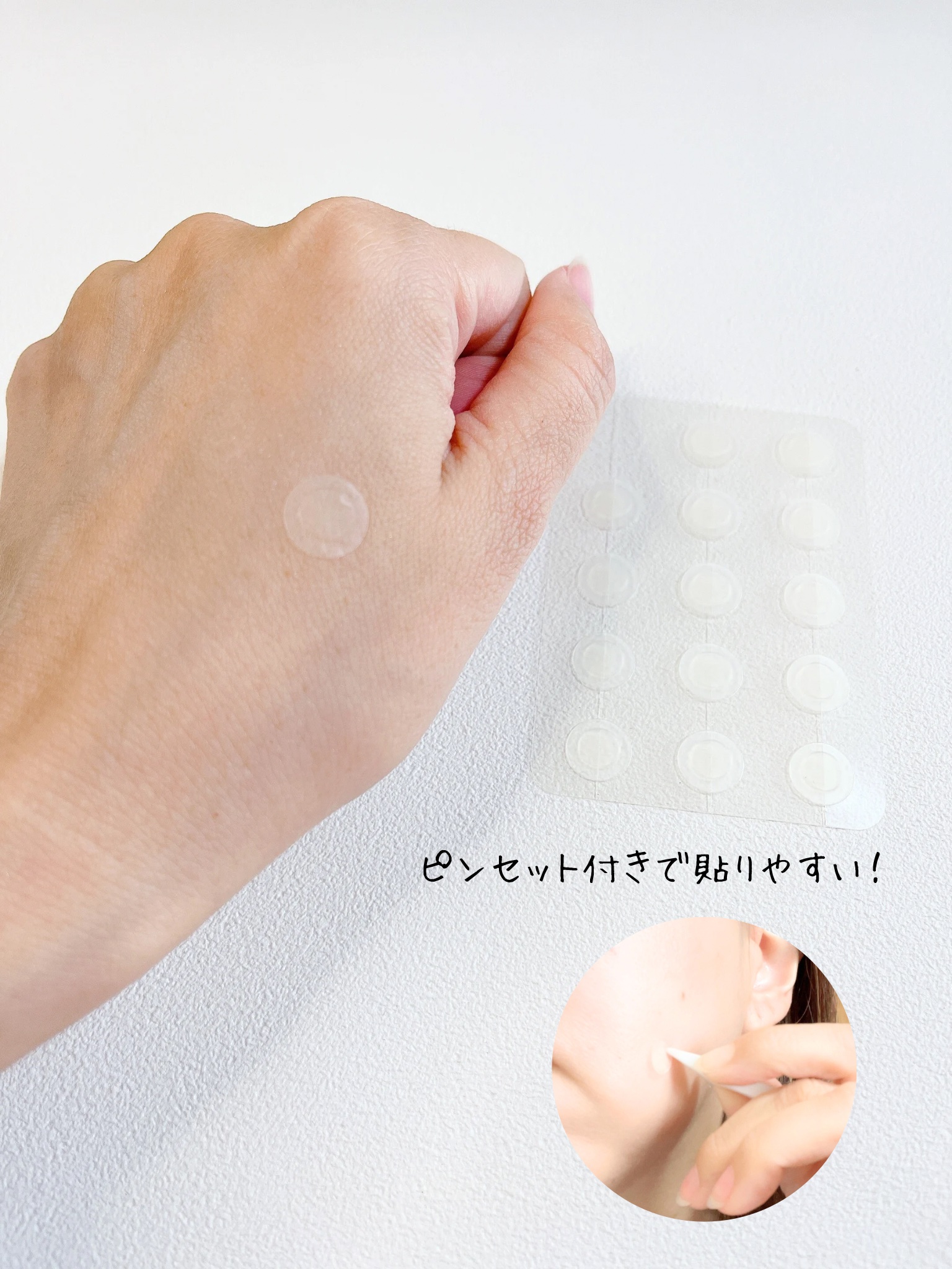 ニキビが潰れてしまった後に貼る、ニキビパッチです! 私は夜のスキンケアが全部終わって、ベタベタしなくなった後に貼っています! 密着力が高くて、朝になっても剥がれてなかったので、お気に入りです! 鍼がついているニキビパッチで、よりしっかりケアしたい方におすすめです!