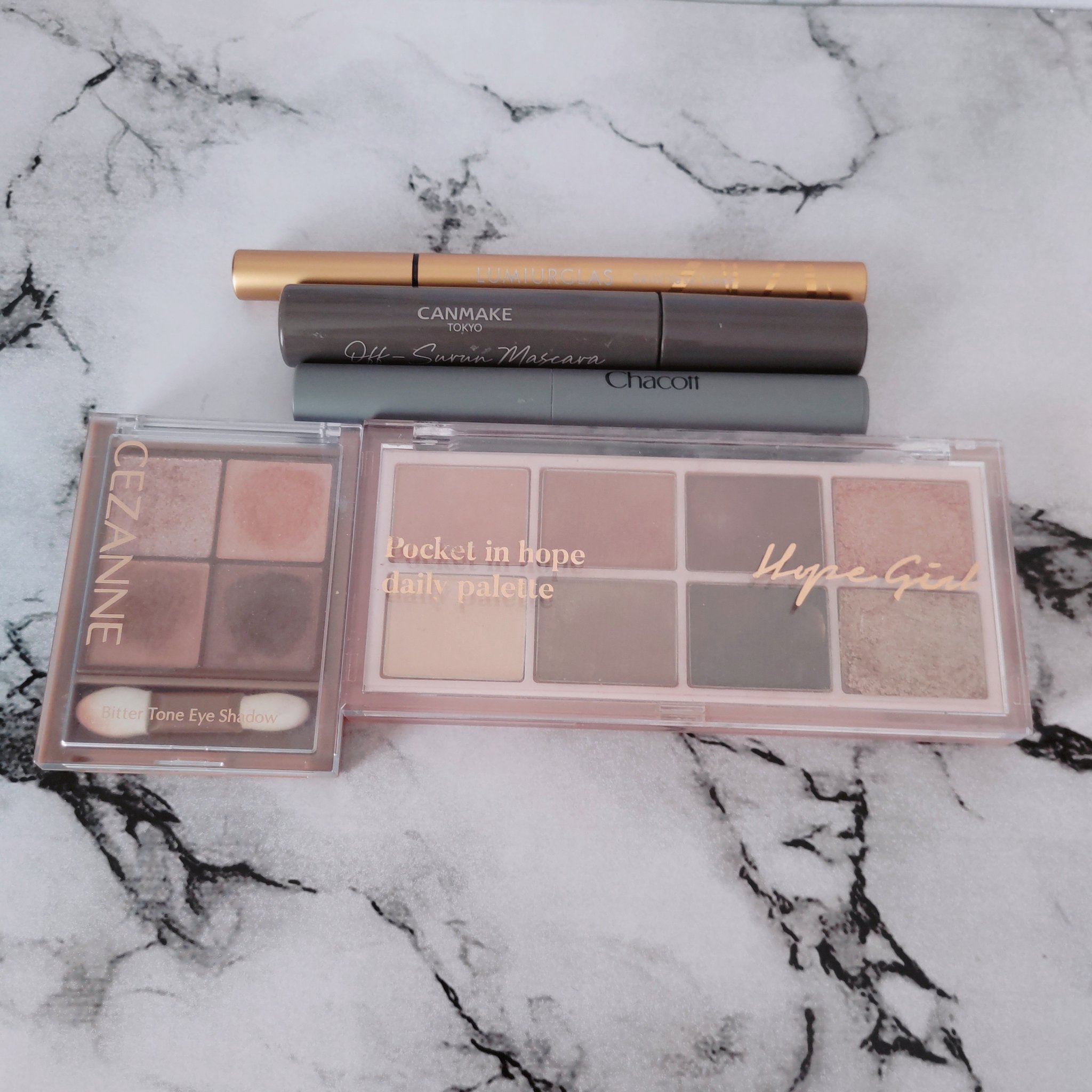 アイシャドウ:ロムアンド べターザンパレット 04ダスティフォグガーデン アイライナー:uzu アイオープニングライナー ブラウンブラック ラメは一切使わず、またアイライナーの色味とマスカラはシンプルなものを使い、ナチュラルに仕上げています🙌🏻 私はいつも、アイシャドウ→アイライン→ダブルライン→ビューラー→マスカラ の順番でアイメイクをしています