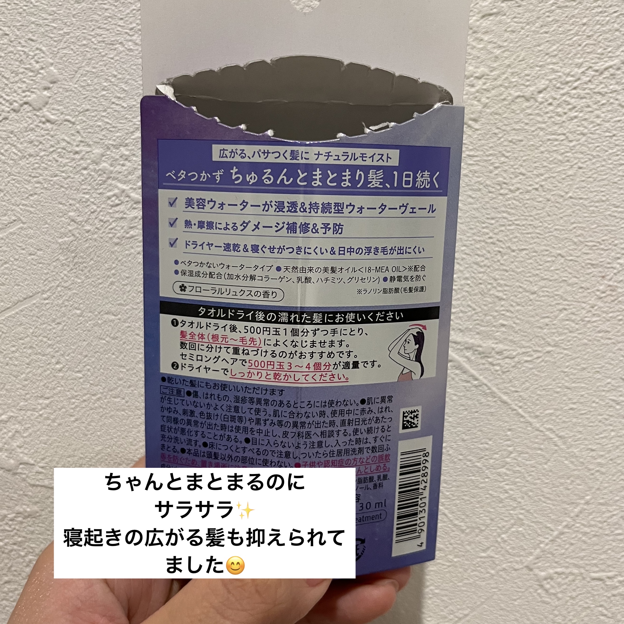 | 乾かすとつるんとした手触りの髪になるのも良き◎ウォーターなので、使用感が軽いところも良いな〜〜と思いました | 詳細を見る | ||