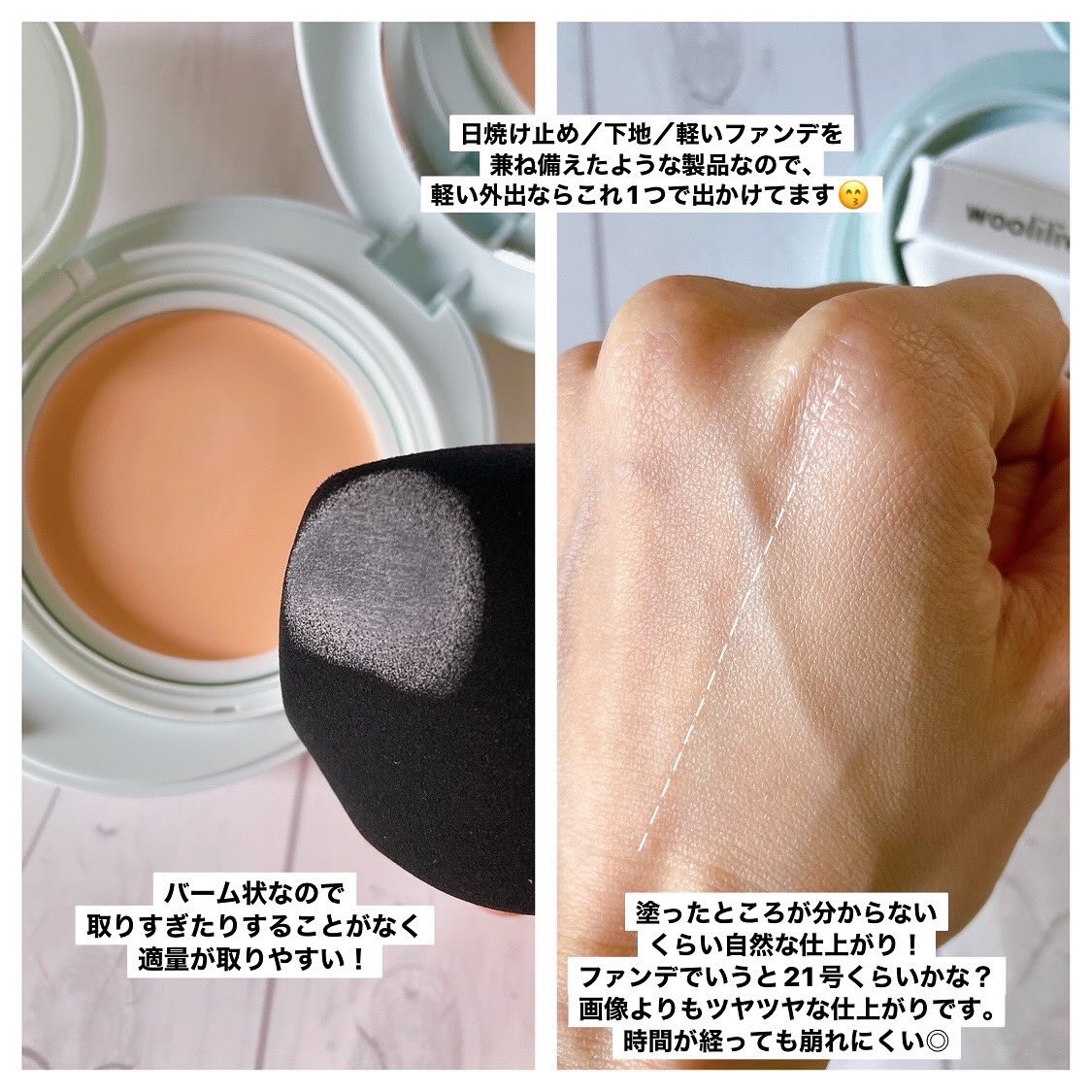 一番の特徴は商品名にもある通り、マスクに付きにくい処方ということ。たしかにマスクには付きにくく、時間経過でのくすみも少ないです✨ わたしが一番気に入ったのは「色味」!画像は21号ですが、他社21号と比較すると白すぎず黄色すぎず、ちょうど良いピンクベージュなのです💓 なんといってもパケが可愛くて、届いた瞬間に「カワイイ〜!!😍」ってなりました。笑 卵型のパフも鼻の横など細かい部分にフィットして使いやすかった。