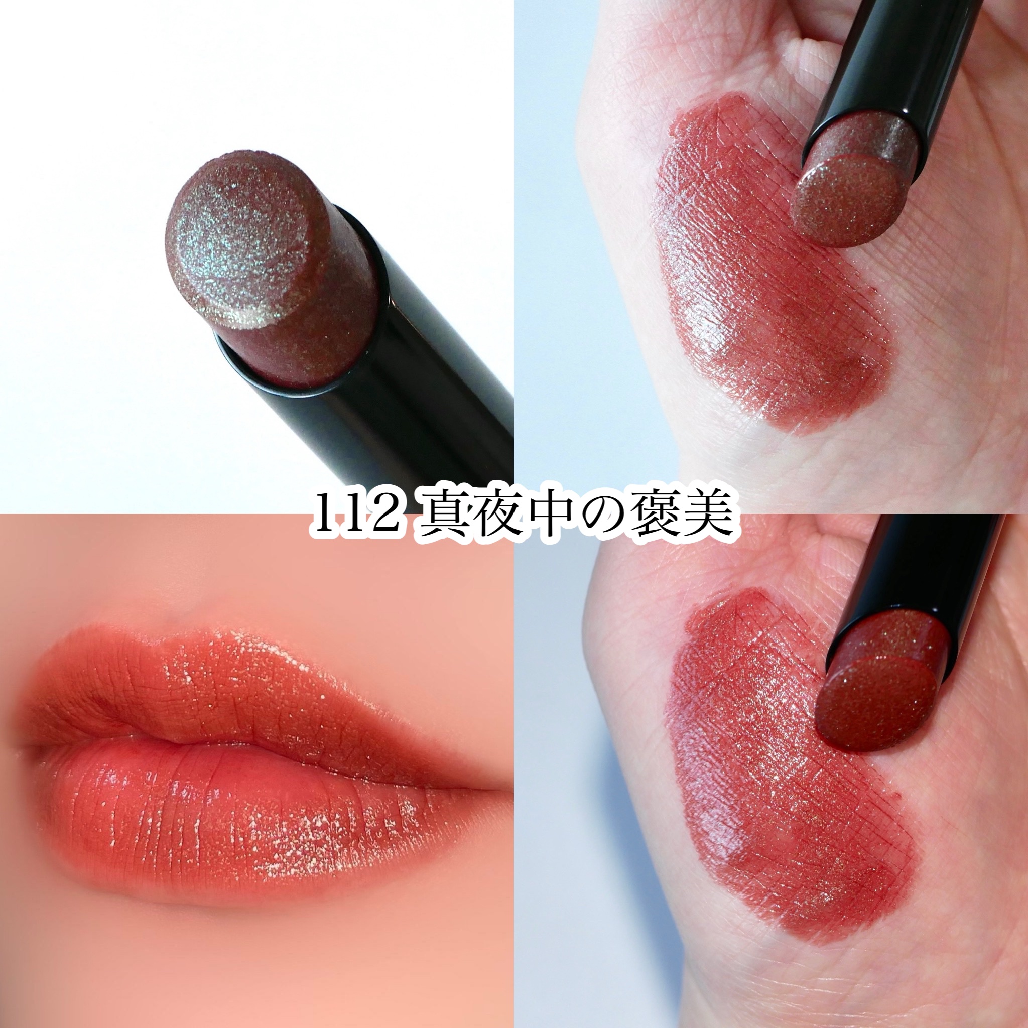 - <01 欲望の塊> テトライソステアリン酸ジペンタエリスリチル、トリ(カプリル酸/カプリン酸)グリセリル、オクチルドデカノール、ラウロイルグルタミン酸ジ(フィトステリル/オクチルドデシル)、ビスアルキル(C16-18)グリセリルウンデシルジメチコン、イソノナン酸イソトリデシル、水添ポリイソブテン、ラウロイルグルタミン酸ジ(オクチルドデシル/フィトステリル/ベヘニル)、パラフィン、合成ワックス、ダイマージリノール酸(フィトステリル/イソステアリル/セチル/ステアリル/ベヘニル)、マイクロクリスタリンワックス、水添マイクロクリスタリンワックス、ヒドロキシステアリン酸エチルヘキシル、トコフェロール、ホホバ種子油、オリーブ果実油、アーモンド油、(エチレン/プロピレン)コポリマー、ポリエチレン、ジメチコン、(+/-)(チタン/酸化チタン)焼結物、マイカ、ラウロイルアスパラギン酸Na、ラウロイルリシン、塩化亜鉛、酸化チタン、酸化鉄、水酸化Al、硫酸Ba、トリイソステアリン酸イソプロピルチタン、酸化スズ、ホウケイ酸(Ca/Al)、合成フルオロフロゴパイト、黄4、黄5、赤104(1)、赤201、赤202 <02 ピンクバナナ> テトライソステアリン酸ジペンタエリスリチル、トリ(カプリル酸/カプリン酸)グリセリル、オクチルドデカノール、ラウロイルグルタミン酸ジ(フィトステリル/オクチルドデシル)、ビスアルキル(C16-18)グリセリルウンデシルジメチコン、イソノナン酸イソトリデシル、水添ポリイソブテン、ラウロイルグルタミン酸ジ(オクチルドデシル/フィトステリル/ベヘニル)、パラフィン、合成ワックス、ダイマージリノール酸(フィトステリル/イソステアリル/セチル/ステアリル/ベヘニル)、マイクロクリスタリンワックス、水添マイクロクリスタリンワックス、ヒドロキシステアリン酸エチルヘキシル、トコフェロール、ホホバ種子油、オリーブ果実油、アーモンド油、(エチレン/プロピレン)コポリマー、ポリエチレン、ジメチコン、(+/-)(チタン/酸化チタン)焼結物、マイカ、ラウロイルアスパラギン酸Na、ラウロイルリシン、塩化亜鉛、酸化チタン、酸化鉄、水酸化Al、硫酸Ba、トリイソステアリン酸イソプロピルチタン、酸化スズ、ホウケイ酸(Ca/Al)、合成フルオロフロゴパイト、黄4、黄5、赤104(1)、赤201、赤202 <03 陽炎> テトライソステアリン酸ジペンタエリスリチル、トリ(カプリル酸/カプリン酸)グリセリル、オクチルドデカノール、ラウロイルグルタミン酸ジ(フィトステリル/オクチルドデシル)、ビスアルキル(C16-18)グリセリルウンデシルジメチコン、イソノナン酸イソトリデシル、水添ポリイソブテン、ラウロイルグルタミン酸ジ(オクチルドデシル/フィトステリル/ベヘニル)、パラフィン、合成ワックス、ダイマージリノール酸(フィトステリル/イソステアリル/セチル/ステアリル/ベヘニル)、マイクロクリスタリンワックス、水添マイクロクリスタリンワックス、ヒドロキシステアリン酸エチルヘキシル、トコフェロール、ホホバ種子油、オリーブ果実油、アーモンド油、(エチレン/プロピレン)コポリマー、ポリエチレン、ジメチコン、(+/-)(チタン/酸化チタン)焼結物、マイカ、ラウロイルアスパラギン酸Na、ラウロイルリシン、塩化亜鉛、酸化チタン、酸化鉄、水酸化Al、硫酸Ba、トリイソステアリン酸イソプロピルチタン、酸化スズ、ホウケイ酸(Ca/Al)、合成フルオロフロゴパイト、黄4、黄5、赤104(1)、赤201、赤202 <04 パンプキンワイン> テトライソステアリン酸ジペンタエリスリチル、トリ(カプリル酸/カプリン酸)グリセリル、オクチルドデカノール、ラウロイルグルタミン酸ジ(フィトステリル/オクチルドデシル)、ビスアルキル(C16-18)グリセリルウンデシルジメチコン、イソノナン酸イソトリデシル、水添ポリイソブテン、ラウロイルグルタミン酸ジ(オクチルドデシル/フィトステリル/ベヘニル)、パラフィン、合成ワックス、ダイマージリノール酸(フィトステリル/イソステアリル/セチル/ステアリル/ベヘニル)、マイクロクリスタリンワックス、水添マイクロクリスタリンワックス、ヒドロキシステアリン酸エチルヘキシル、トコフェロール、ホホバ種子油、オリーブ果実油、アーモンド油、(エチレン/プロピレン)コポリマー、ポリエチレン、ジメチコン、(+/-)(チタン/酸化チタン)焼結物、マイカ、ラウロイルアスパラギン酸Na、ラウロイルリシン、塩化亜鉛、酸化チタン、酸化鉄、水酸化Al、硫酸Ba、トリイソステアリン酸イソプロピルチタン、酸化スズ、ホウケイ酸(Ca/Al)、合成フルオロフロゴパイト、黄4、黄5、赤104(1)、赤201、赤202 <05 ダークフィグ> テトライソステアリン酸ジペンタエリスリチル、トリ(カプリル酸/カプリン酸)グリセリル、オクチルドデカノール、ラウロイルグルタミン酸ジ(フィトステリル/オクチルドデシル)、ビスアルキル(C16-18)グリセリルウンデシルジメチコン、イソノナン酸イソトリデシル、水添ポリイソブテン、ラウロイルグルタミン酸ジ(オクチルドデシル/フィトステリル/ベヘニル)、