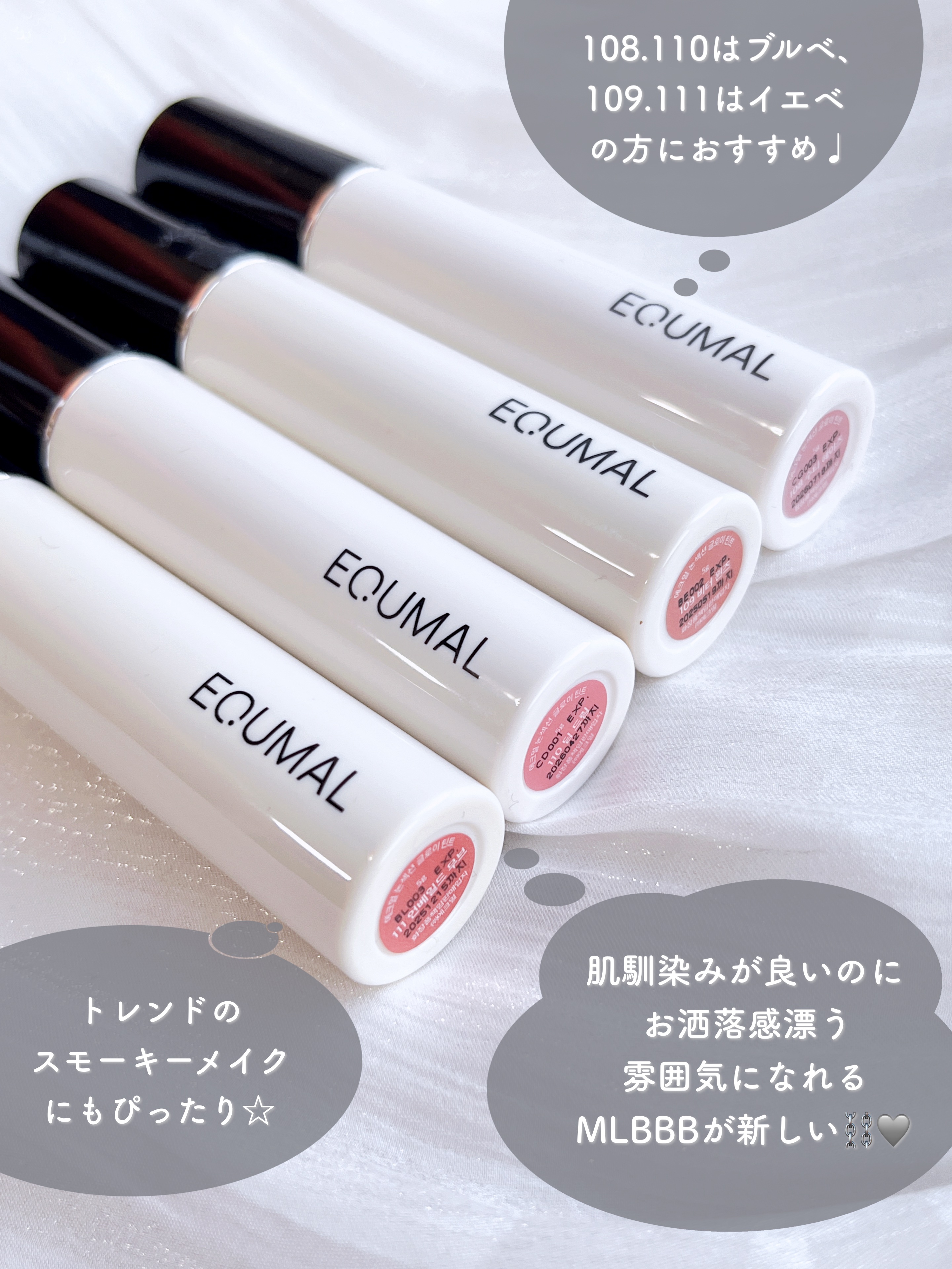 私的に、色持ちの他に'落ち方が綺麗か'もかなり重要視しています🤔 オフィスメイクにも、デートにも、毎日メイクにも使いやすいラインナップです🫰🏻 ブルベのイエベ寄せメイクにも💯