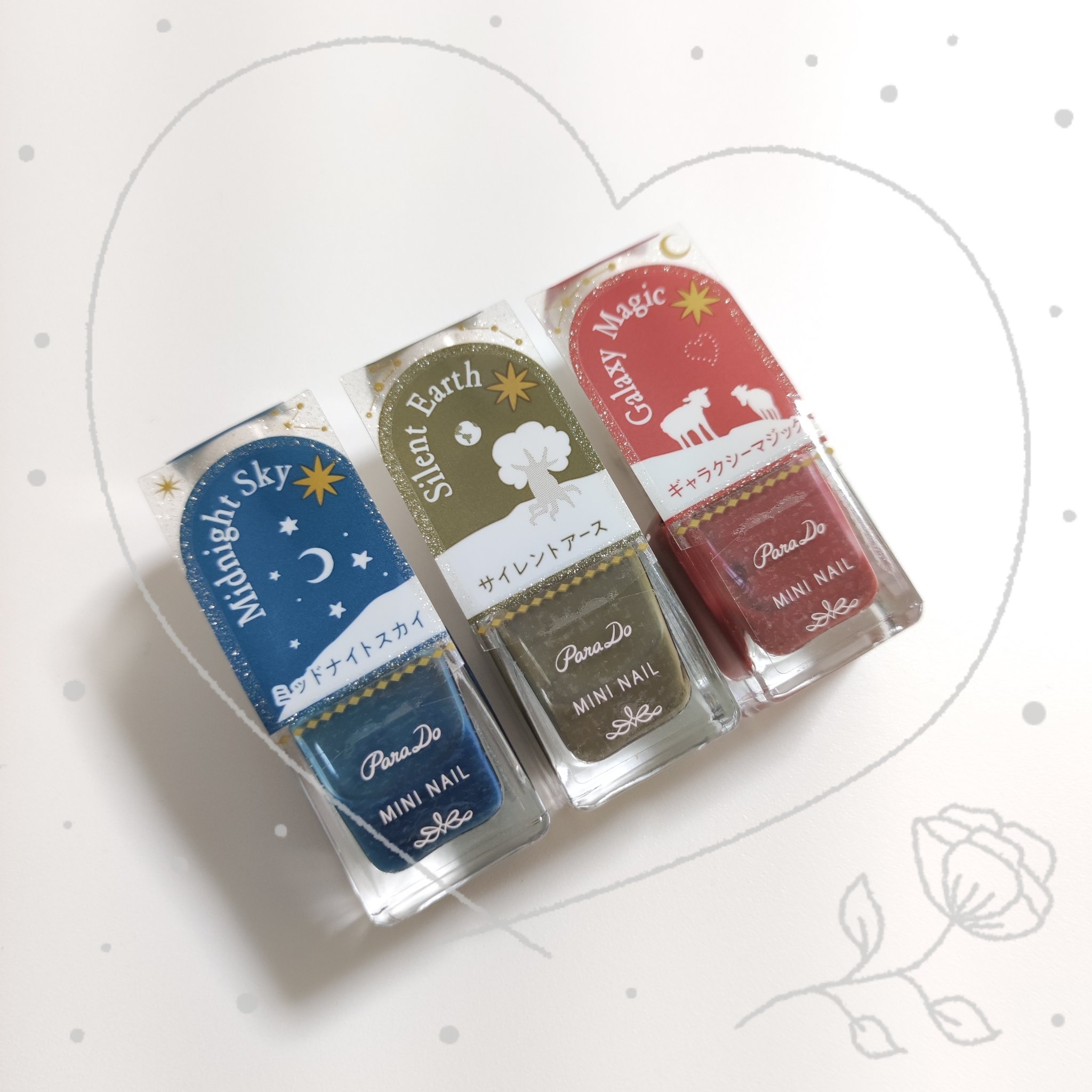 パラドゥミニネイルStarryDream2023年の秋冬ネイルで発売されていたパラドゥのネイル!!星の王子さまからインスパイアされたシリーズです。既に販売終了されていますが、ストックしていた分を開けたので紹介します✨3種のラメカラーと、3種の...