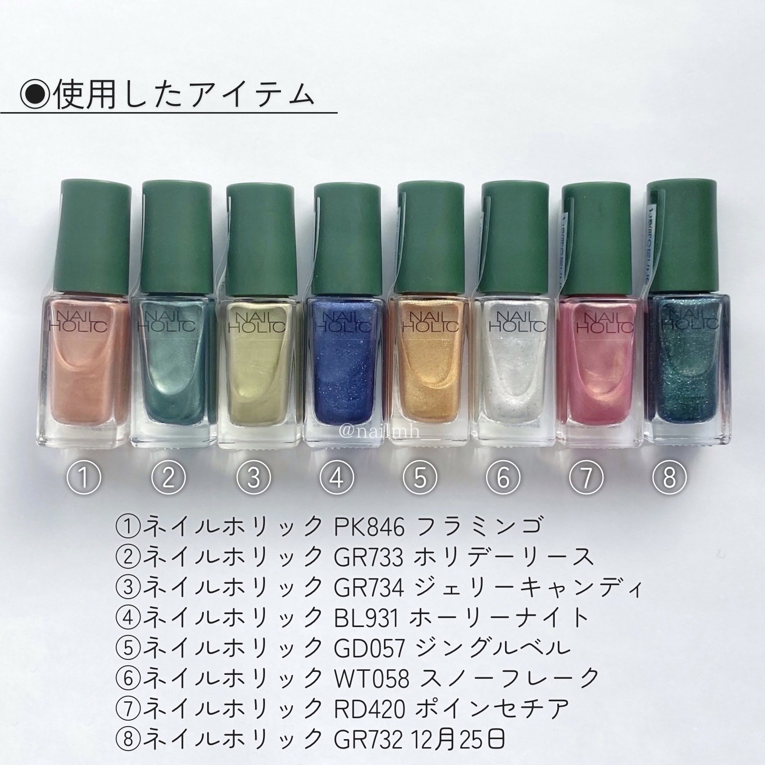 - <GD057 ジングルベル> 酢酸ブチル、酢酸エチル、ニトロセルロース、(アジピン酸/ネオペンチルグリコール/無水トリメリト酸)コポリマー、イソプロパノール、クエン酸アセチルトリブチル、アクリレーツコポリマー、オキシベンゾン-1、シリカ、ジアセトンアルコール、ステアラルコニウムベントナイト、ブタノール、ホウケイ酸(Ca/Al)、ホウケイ酸(Ca/Na)、リン酸、マイカ、酸化チタン、酸化鉄、黄4、赤201 <GR733 ホリデーリース> 酢酸ブチル、酢酸エチル、ニトロセルロース、(アジピン酸/ネオペンチルグリコール/無水トリメリト酸)コポリマー、クエン酸アセチルトリブチル、イソプロパノール、アクリレーツコポリマー、オキシベンゾン-1、シリカ、ジアセトンアルコール、ステアラルコニウムベントナイト、ブタノール、リン酸、合成フルオロフロゴパイト、カーボンブラック、コンジョウ、マイカ、酸化チタン、酸化鉄、黄4 <GR734 ジェリーキャンディ> 酢酸ブチル、酢酸エチル、ニトロセルロース、(アジピン酸/ネオペンチルグリコール/無水トリメリト酸)コポリマー、イソプロパノール、クエン酸アセチルトリブチル、アクリレーツコポリマー、オキシベンゾン-1、シリカ、ジアセトンアルコール、ステアラルコニウムベントナイト、ブタノール、リン酸、マイカ、酸化チタン、酸化鉄、黄4 <WT058 スノーフレーク> 酢酸ブチル、酢酸エチル、ニトロセルロース、(アジピン酸/ネオペンチルグリコール/無水トリメリト酸)コポリマー、クエン酸アセチルトリブチル、イソプロパノール、シリカ、ステアラルコニウムベントナイト、アクリレーツコポリマー、オクトクリレン、ジアセトンアルコール、ブタノール、ポリビニルブチラール、リン酸、結晶セルロース、合成フルオロフロゴパイト、水、酸化チタン、酸化鉄、黄4 <BL931 ホーリーナイト> 酢酸ブチル、酢酸エチル、ニトロセルロース、(アジピン酸/ネオペンチルグリコール/無水トリメリト酸)コポリマー、クエン酸アセチルトリブチル、イソプロパノール、合成フルオロフロゴパイト、ステアラルコニウムベントナイト、アクリレーツコポリマー、シリカ、ジアセトンアルコール、ブタノール、ポリビニルブチラール、リン酸、結晶セルロース、水、カーボンブラック、コンジョウ、マイカ、酸化チタン、黄4、赤201、赤220 <GR732 12月25日> 酢酸ブチル、酢酸エチル、ニトロセルロース、(アジピン酸/ネオペンチルグリコール/無水トリメリト酸)コポリマー、クエン酸アセチルトリブチル、イソプロパノール、ステアラルコニウムベントナイト、合成フルオロフロゴパイト、アクリレーツコポリマー、シリカ、ジアセトンアルコール、ブタノール、ホウケイ酸(Ca/Na)、ポリビニルブチラール、リン酸、結晶セルロース、水、コンジョウ、マイカ、酸化クロム、酸化チタン、酸化鉄、黄4 <PK846 フラミンゴ> 酢酸ブチル、酢酸エチル、ニトロセルロース、(アジピン酸/ネオペンチルグリコール/無水トリメリト酸)コポリマー、イソプロパノール、クエン酸アセチルトリブチル、アクリレーツコポリマー、アルミナ、オキシベンゾン-1、ケイ酸Mg、シリカ、ジアセトンアルコール、ステアラルコニウムベントナイト、トリエトキシカプリリルシラン、ブタノール、リン酸、合成フルオロフロゴパイト、マイカ、マンガンバイオレット、酸化チタン、酸化鉄、黄4、赤201 <RD420 ポインセチア> 酢酸ブチル、酢酸エチル、ニトロセルロース、(アジピン酸/ネオペンチルグリコール/無水トリメリト酸)コポリマー、クエン酸アセチルトリブチル、イソプロパノール、アクリレーツコポリマー、オキシベンゾン-1、ケイ酸Mg、シリカ、ジアセトンアルコール、ステアラルコニウムベントナイト、ブタノール、リン酸、合成フルオロフロゴパイト、マイカ、マンガンバイオレット、酸化チタン、酸化鉄、黄4、赤201