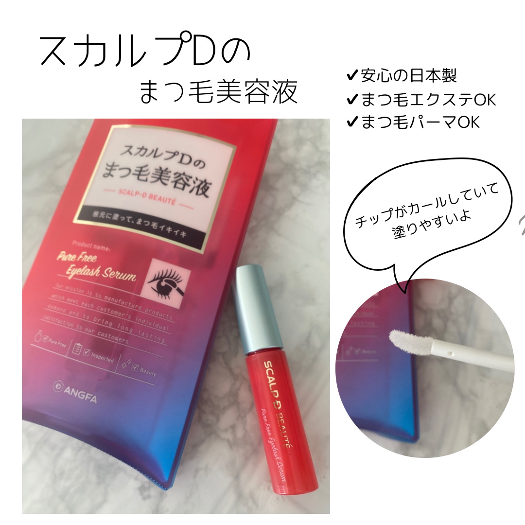 - スカルプDまつ毛美容液はまつ毛にハリコシを与えて、美しいまつ毛をしっかりキープ。 スカルプD独自開発のラッシュDカプセル配合で、角質層まで直接浸透。 より健やかな愛されまつ毛に導きます♪ 使いやすさ・やさしさにこだわった、ふわふわカールチップ採用で根元からも塗りやすく、敏感な目元にやさしい使い心地です。 シリコン、オイル、アルコール(エタノール)、防腐剤(パラベン)、香料、合成着色料、界面活性剤、プロスタグランジン類似物質の8つの成分不使用の“ピュアフリー設計”を実現。 まつ毛エクステ、まつ毛パーマにもご使用いただけます。