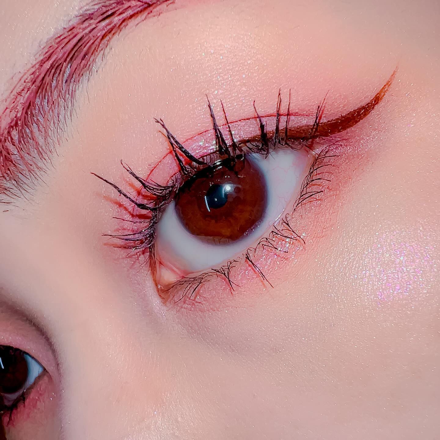 ピンクにグレージュも良いですね👌💗 今日は可愛らしい感じにしてみました💕 上下瞼黒目〜目頭側にラメを塗ってキラキラさせております🤩 目尻はマットのピンクを濃いめに重ねて💗 グレージュのアイライナーと相性◎