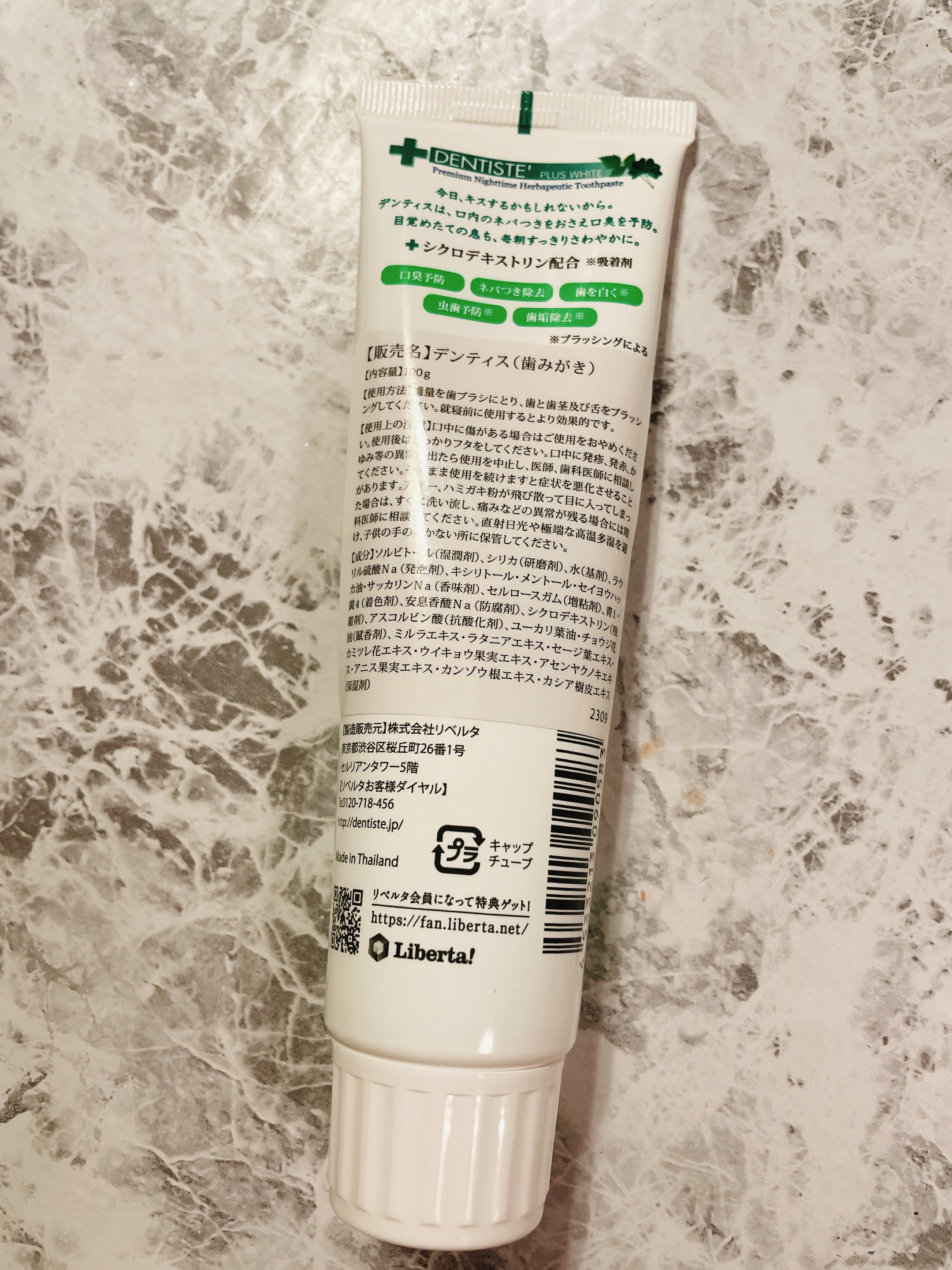 - <チューブタイプ 100g> ソルビトール(湿潤剤)、シリカ(研磨剤)、水(基剤)、ラウリル硫酸Na(発泡剤)、キシリトール・メントール・セイヨウハッカ油・サッカリンNa(香味剤)、青1・黄4( 着色剤)、安息香酸Na・メチルパラベン(防腐剤)、シクロデキストリン(吸着剤)、ア スコルビン酸(抗酸化剤)、ユーカリ葉油・チョウジ花油(賦香剤)、ミルラエキス・ラ タニアエキス・セージ葉エキス・カミツレ花エキス・ウイキョウ果実エキス・アセンヤク ノキエキス・アニス果実エキス・カンゾウ根エキス・カシア樹皮エキス(保湿剤) <チューブタイプ(レモングラス)100g> ソルビトール(湿潤剤)、水(基剤)、含水シリカ(研磨剤)、ラウリル硫酸Na(発泡剤)、キシリトール・セルロースガム・メントール・セイヨウハッカ油(香味剤)、安息酸Na(防腐剤)、シクロデキストリン(吸着剤)、サッカリンNa(香味剤)、アスコルビン酸(抗酸化剤)、レモングラス葉油・ユーカリ葉油・チョウジ花油(賦香剤)、レモン果実エキス・モツヤクジュ樹脂エキス・クラメリアトリアンドラ根エキス・セージエキス・ローマカミツレ花エキス・ウイキョウ種子エキス・アセンヤクノキ木エキス・アニス種子エキス・カンゾウ根エキス・カシア樹皮エキス・ムラサキバレンギクエキス(保湿剤)、黄4・青1・黄5(着色剤) <チューブタイプ 100g×2本セット> ソルビトール(湿潤剤)、シリカ(研磨剤)、水(基剤)、ラウリル硫酸Na(発泡剤)、キシリトール・メントール・セイヨウハッカ油・サッカリンNa(香味剤)、青1・黄4( 着色剤)、安息香酸Na・メチルパラベン(防腐剤)、シクロデキストリン(吸着剤)、ア スコルビン酸(抗酸化剤)、ユーカリ葉油・チョウジ花油(賦香剤)、ミルラエキス・ラ タニアエキス・セージ葉エキス・カミツレ花エキス・ウイキョウ果実エキス・アセンヤク ノキエキス・アニス果実エキス・カンゾウ根エキス・カシア樹皮エキス(保湿剤) <チューブタイプ ミニサイズ 5g> ソルビトール(湿潤剤)、シリカ(研磨剤)、水(基剤)、ラウリル硫酸Na(発泡剤)、キシリトール・メントール・セイヨウハッカ油・サッカリンNa(香味剤)、セルロースガム(増粘剤)、青1・黄4(着色剤)、安息香酸Na(防腐剤)、シクロデキストリン(吸着剤)、アスコルビン酸(抗酸化剤)、ユーカリ葉油・チョウジ花油(賦香剤)、ミルラエキス・ラタニアエキス・セージ葉エキス・カミツレ花エキス・ウイキョウ果実エキス・アセンヤクノキエキス・アニス果実エキス・カンゾウ根エキス・カシア樹皮エキス(保湿剤) <ポンプタイプ 120g> ソルビトール(湿潤剤)、シリカ(研磨剤)、水(基剤)、ラウリル硫酸Na(発泡剤)、キシリトール・メントール・セイヨウハッカ油・サッカリンNa(香味剤)、青1・黄4( 着色剤)、安息香酸Na・メチルパラベン(防腐剤)、シクロデキストリン(吸着剤)、ア スコルビン酸(抗酸化剤)、ユーカリ葉油・チョウジ花油(賦香剤)、ミルラエキス・ラ タニアエキス・セージ葉エキス・カミツレ花エキス・ウイキョウ果実エキス・アセンヤク ノキエキス・アニス果実エキス・カンゾウ根エキス・カシア樹皮エキス(保湿剤) <チューブタイプ(ピーチ&ミント)100g> ソルビトール(湿潤剤)、含水シリカ(研磨剤)、水(基剤)、プロパンジオール(保湿剤)、ラウリル硫酸Na(発泡剤)、キシリトール(香味剤)、セルロースガム(粘結剤)、香料(香味剤)、メントール(清涼剤)、セイヨウハッカ油(香味剤)、安息香酸Na(防腐剤)、シクロデキストリン(吸着剤)、サッカリンNa(香味剤)、アスコルビン酸(製品の抗酸化剤)、モモ果実エキス(保湿剤)、ユーカリ葉油(香味剤)、チョウジ花油(香味剤)、モツヤクジュ樹脂エキス(保湿剤)、クラメリアトリアンドラ根エキス(保湿剤)、セージ葉エキス(保湿剤)、ローマカミツレ花エキス(保湿剤)、ウイキョウ果実エキス(保湿剤)、アセンヤクノキ木エキス(保湿剤)、アニス果実エキス(保湿剤)、カンゾウ根エキス(保湿剤)、カシア樹皮エキス(保湿剤)、エチナシ根エキス(保湿剤)、青1(着色剤)、黄4(着色剤)