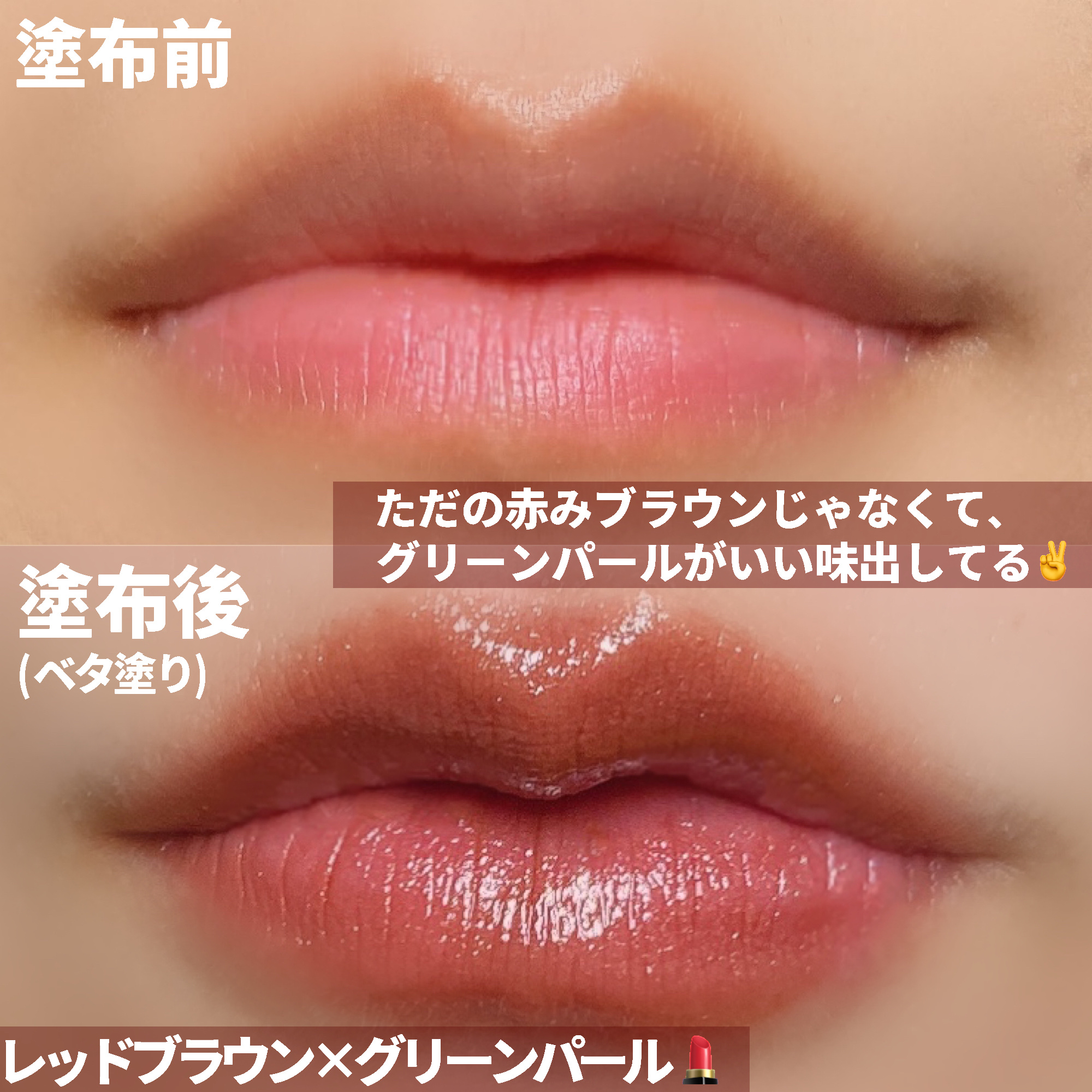 唇の形が可愛い!!ってコメントで言って頂く機会がちらほら…あるんですが、作ってるだけなんです…🥹 ぽてっ🩷とした厚みも無いし、唇の山が結構はっきりしてるタイプで、そのままリップを塗るとなんか垢抜けない印象になる唇…🥹笑 更にぽってり感が欲しい方は、唇の中心(オーバーにリップを付けた所)だけ、グロスを追加するのも可愛いよ🥰 凹凸感でて少し腫れたような、ぷっくり唇に見えるのまじで可愛くて、この方法やめらんない←