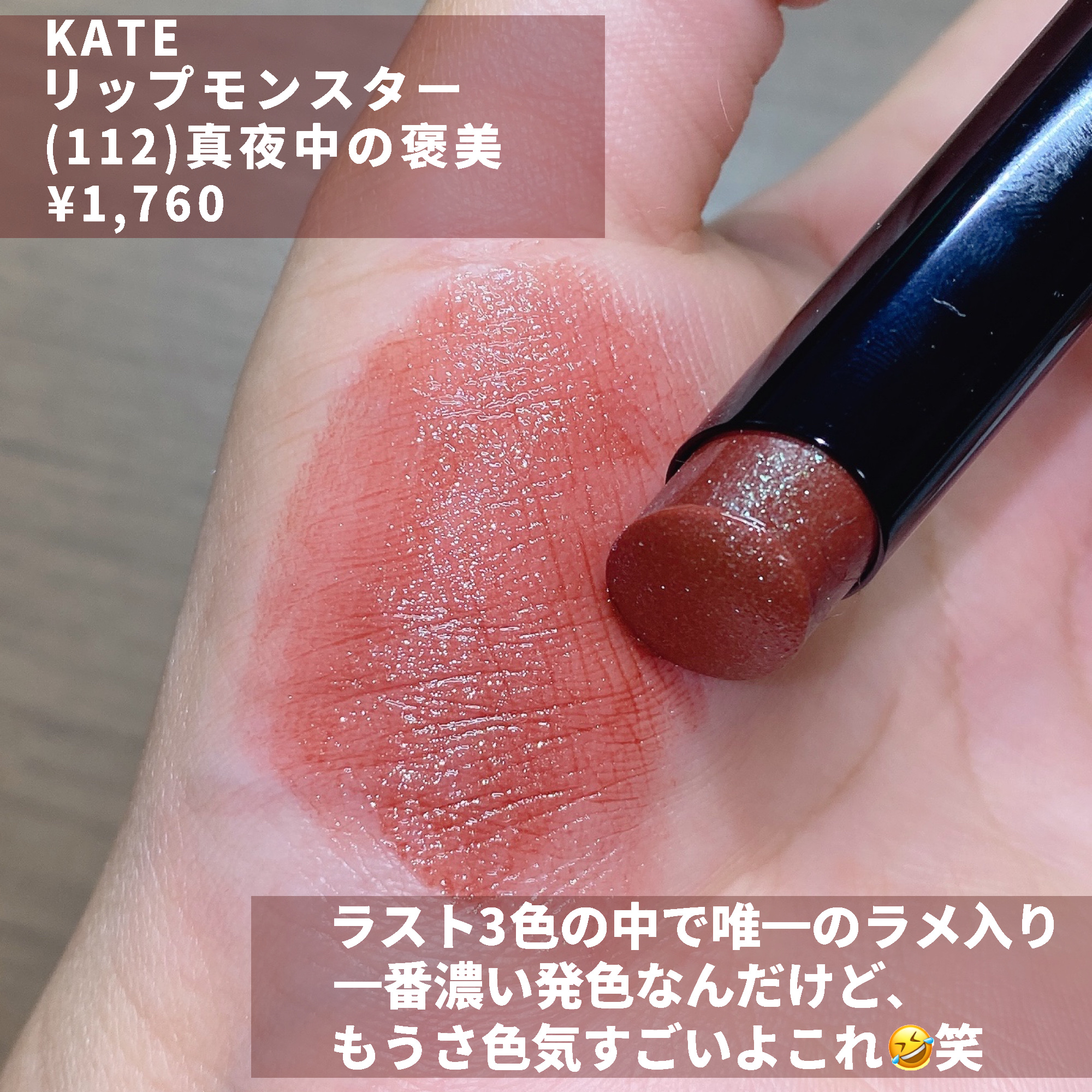 #リプモン KATEリップモンスター112真夜中の褒美(限定色) ¥1,760発売されてから不動の人気❣️ティントといえば…リプモン イエベ秋2nd冬の私がいっっちばんタイプだ!似合う!ってなったのがこの限定色の#真夜中の褒美 グリーンパール...