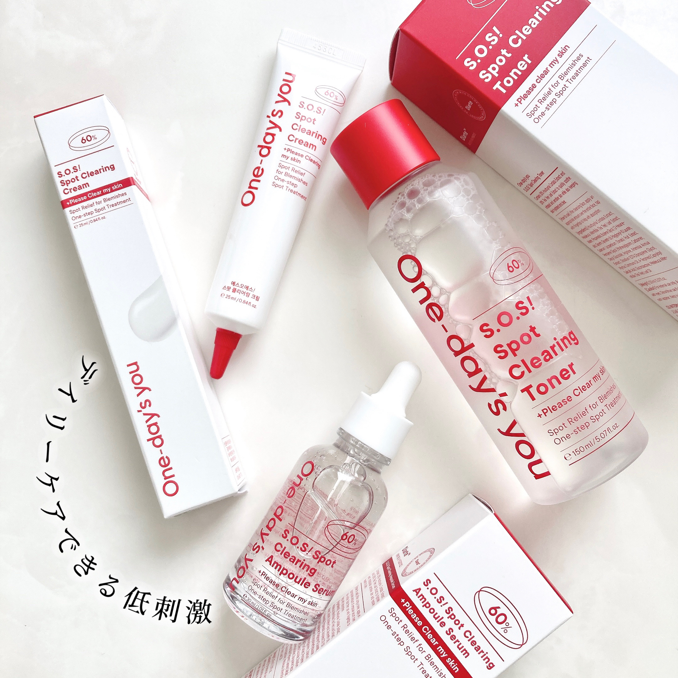 #PR【One-day'syou】S.O.S!SpotClearingToner150mlサラっとしたテクスチャーで肌にぐんぐん吸収されます角質や皮脂を綺麗に抑えて、鎮静ケア成分が肌を癒してくれるので、刺激が低いのに肌を健康に導いてくれると思...