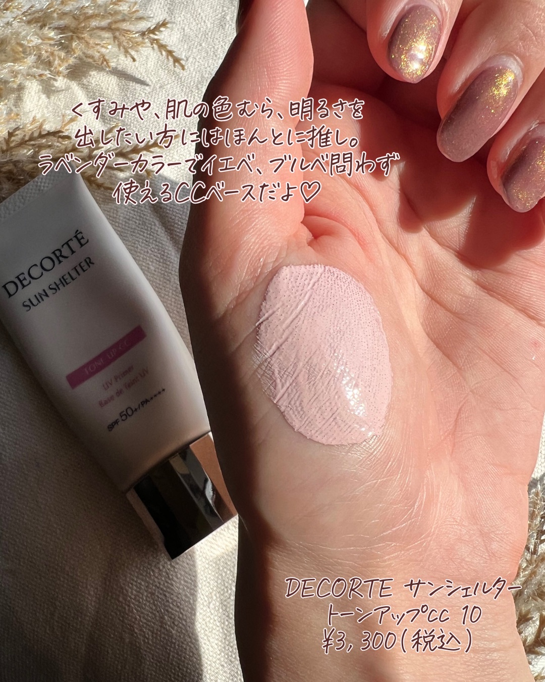 コスメデコルテのサンシェルターマルチプロテクショントーンアップCCをご紹介します🥰色は10のラベンダーローズです🥀こちらはSPF50+PA++++なのにベタベタせずさらさらです🌟また、ピンクっぽい色味で肌を補正しつつ、ナチュラルに仕上げてくれ...