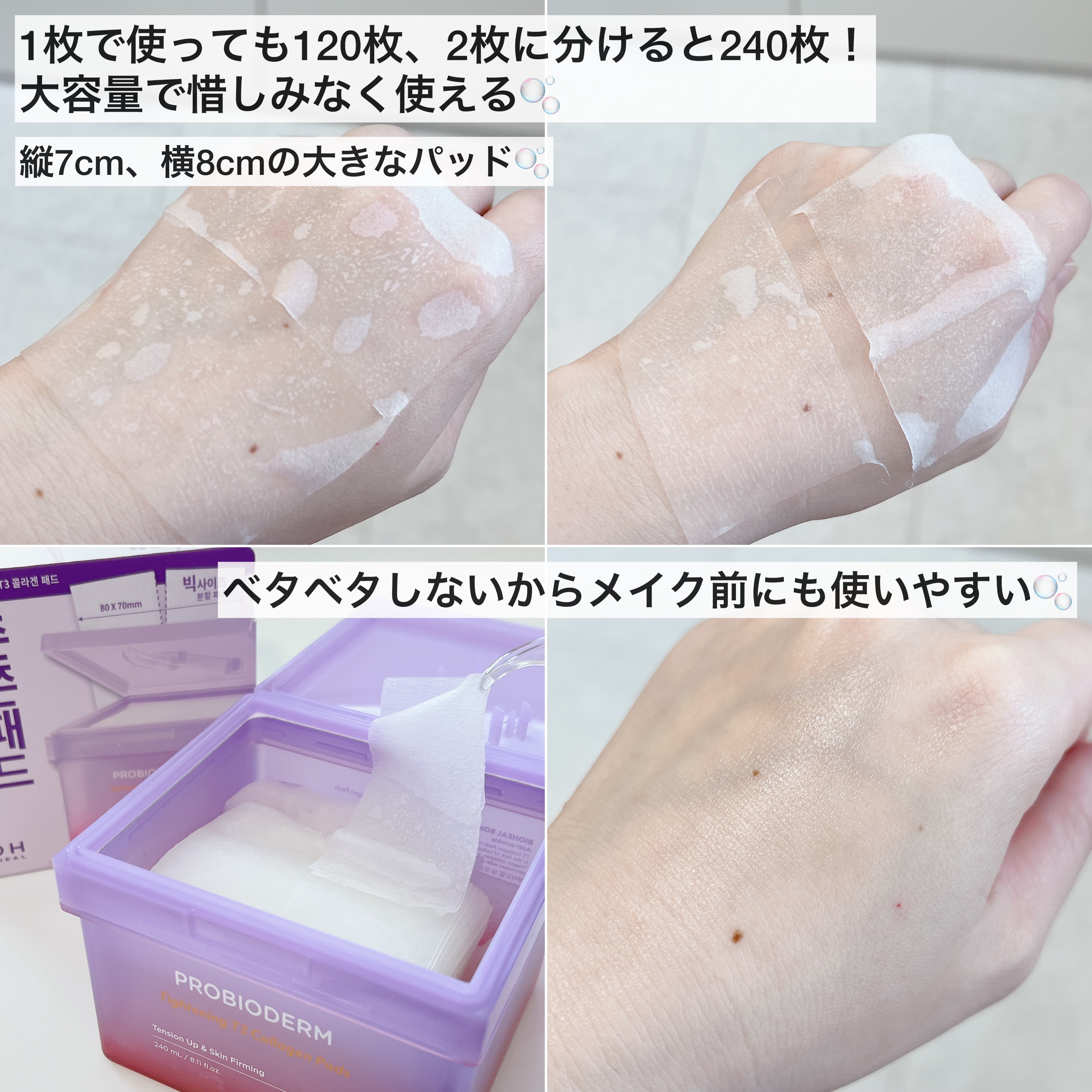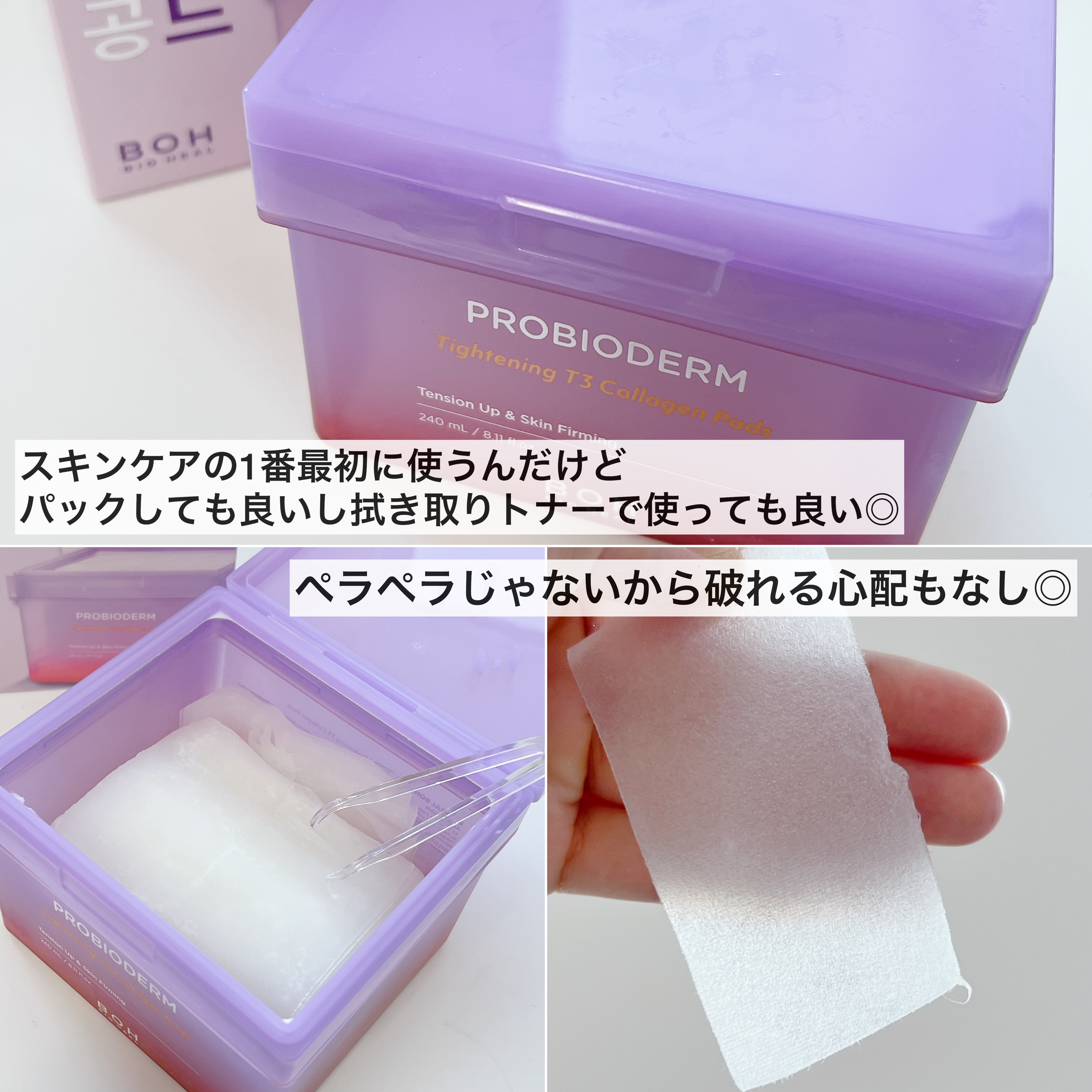 使い心地抜群!リピしたいトナーパッド💜 BIOHEAL BOH プロバイオダームタイトニングT3コラーゲンパッド (リニューアル前) Qoo10の999円ぽっきり企画で購入しました! シートに切れ目があるので、貼りやすい✨️ あまり浮いてこなかったので、密着力もいい感じです! メガ割など、お得な時に購入したいと思いました👀