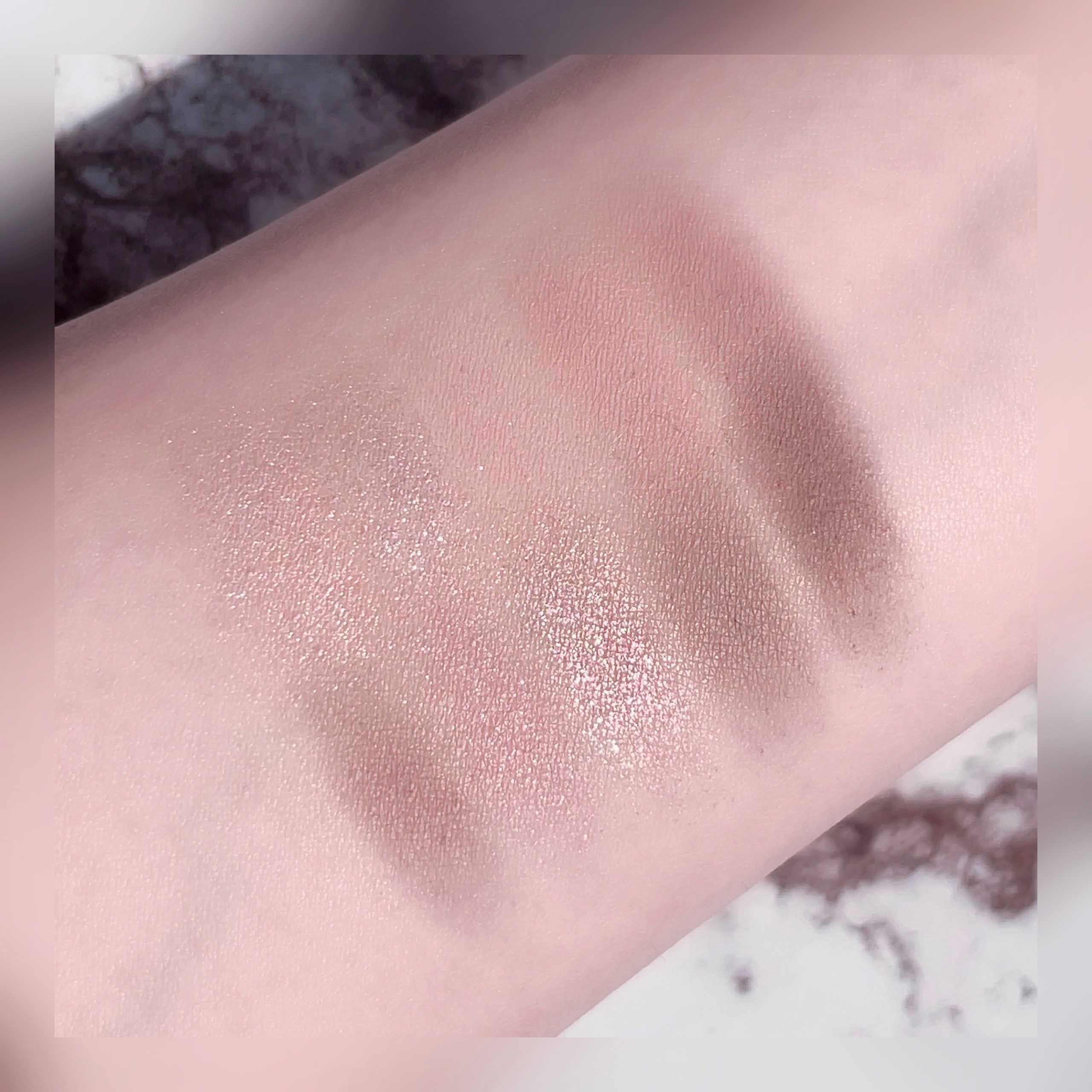 ベージュ強めのカラーなんじゃないかと少し不安でしたが、実際はくすみピンクベージュのようなカラー。 粉質はほとんどがマット質感。 ピンクベージュっぽい柔らかいカラーが好きな方は買う価値あると思います。 仕上がりは、誰にでも愛されそうなメイク。みたいな感じで可愛い🤭 ただ、締め色っぽいカラーが多い。 全10色に対して暗めのカラーは4色。 メインカラーが無いように感じました。 10色もあるのにできるメイクの幅が狭いと感じてしまいました。 捨て色はありませんが、似たような暗いカラーが多すぎる😭