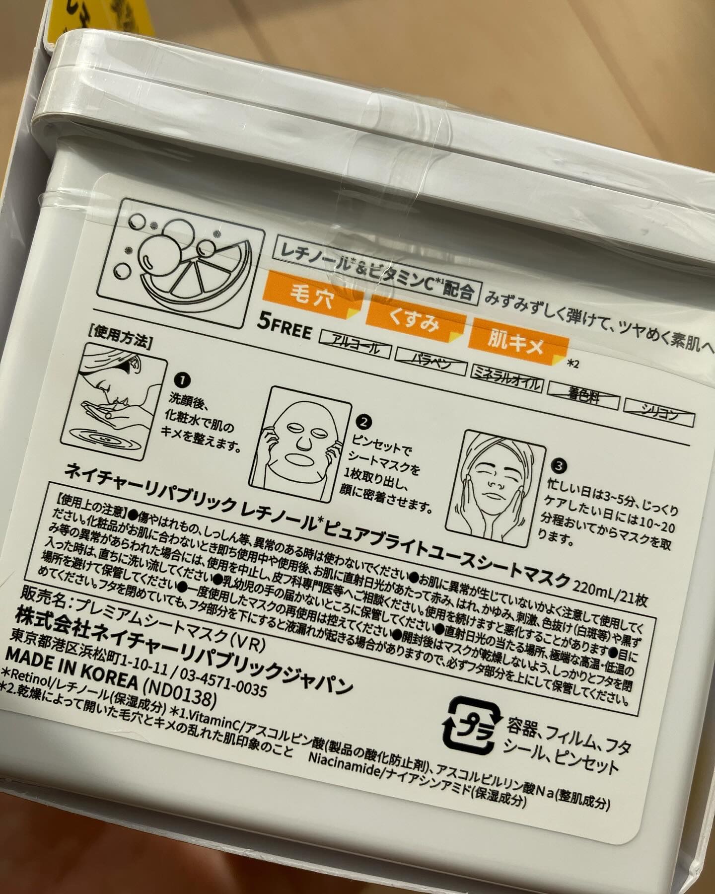 商品詳細情報ネイチャーリパブリック キューブマスク レチノール