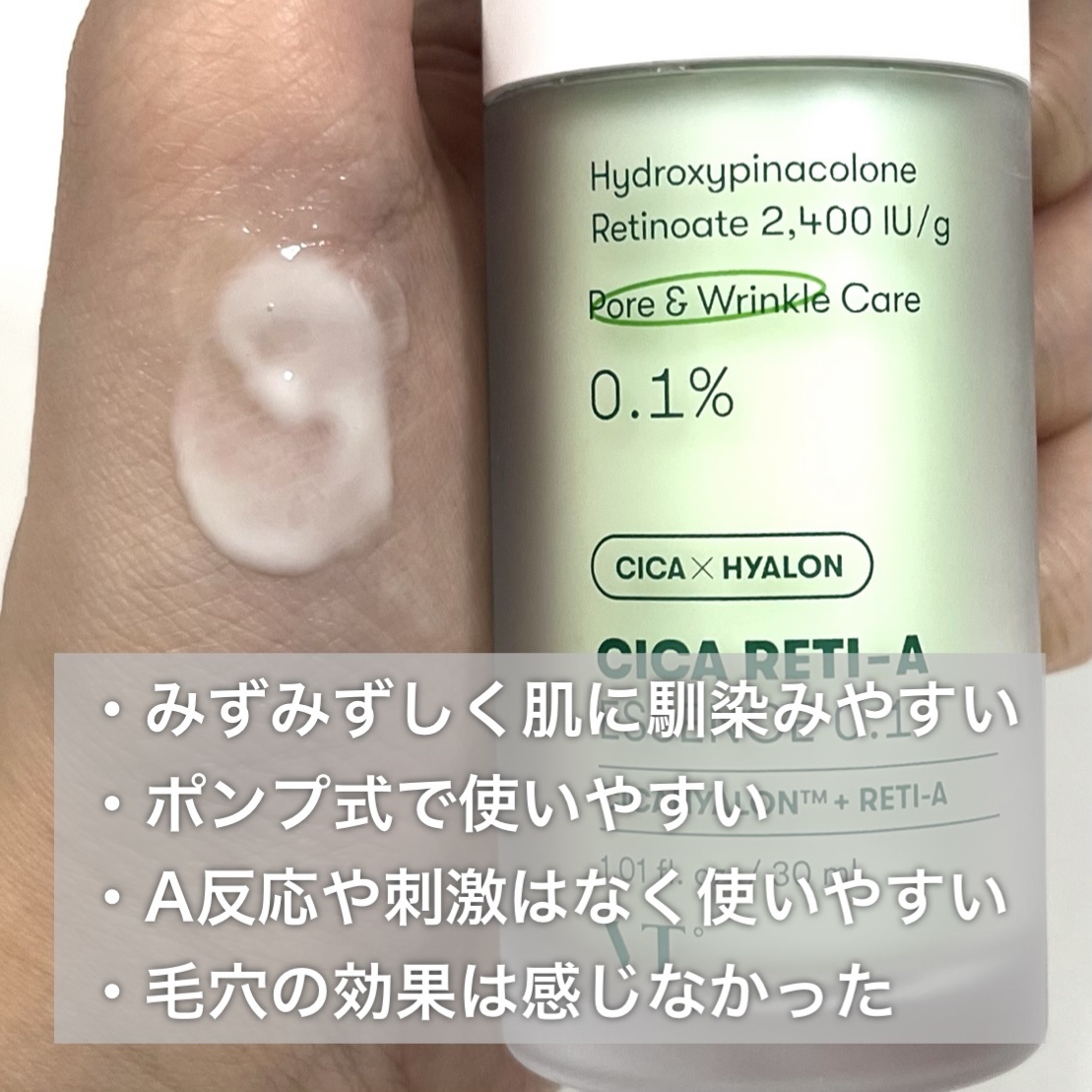 レチノール初心者さんからステップアップまで!VTのレチノール2種類を実際に使ってみました✨💛シカレチAエッセンス0.1レチノール0.1%+LHA配合で、やさしく角質ケア。乳液のように軽くてベタつかず、毎日のお手入れに取り入れやすいアイテムでし...